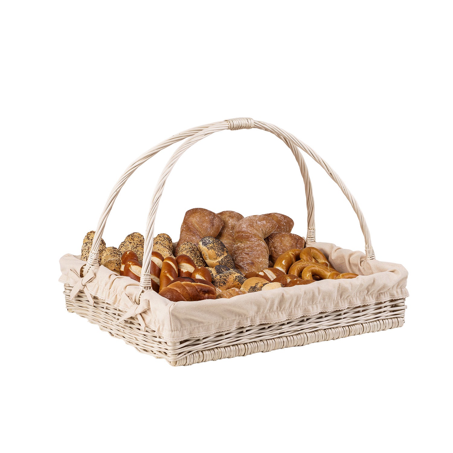 Allium wiklinowy kosz na serwowanie z kremowym obszyciem, z uchwytami