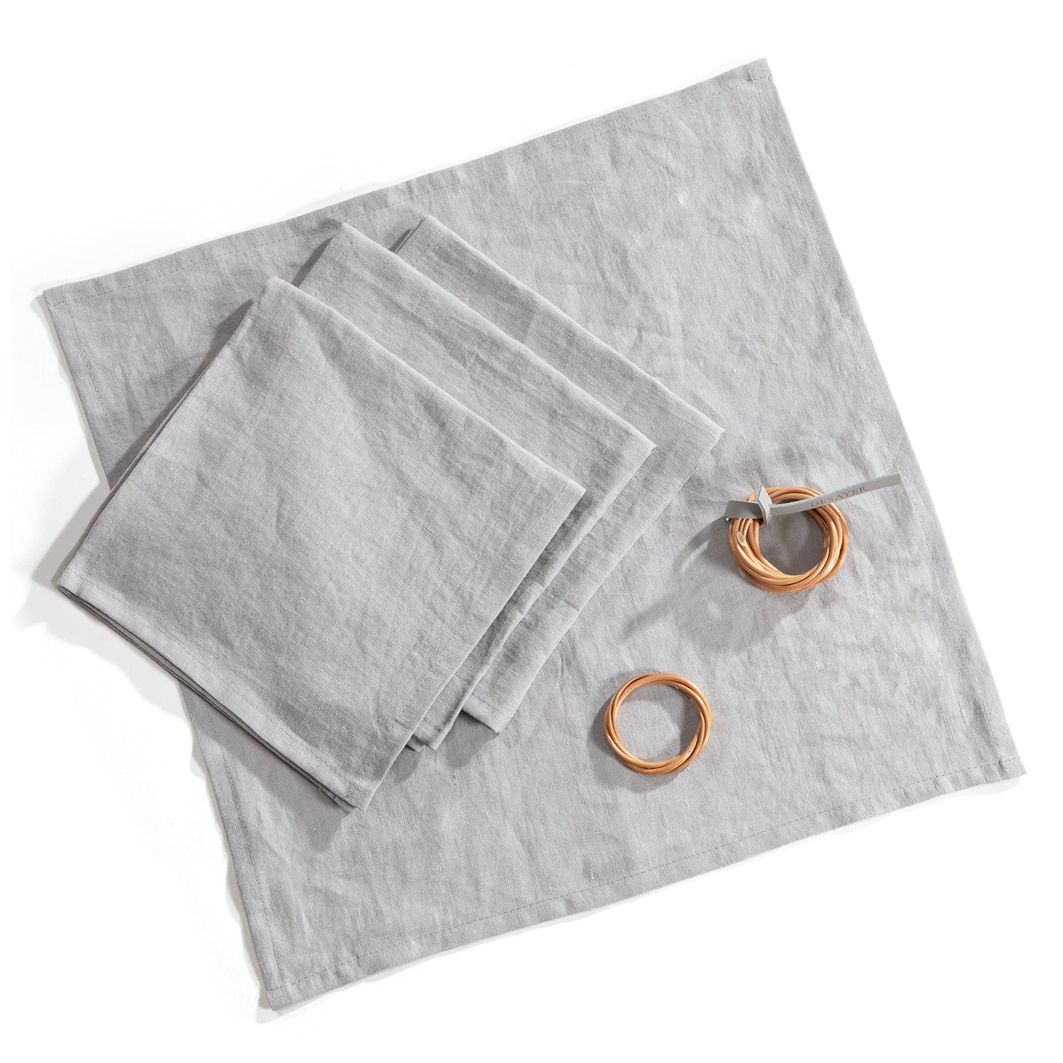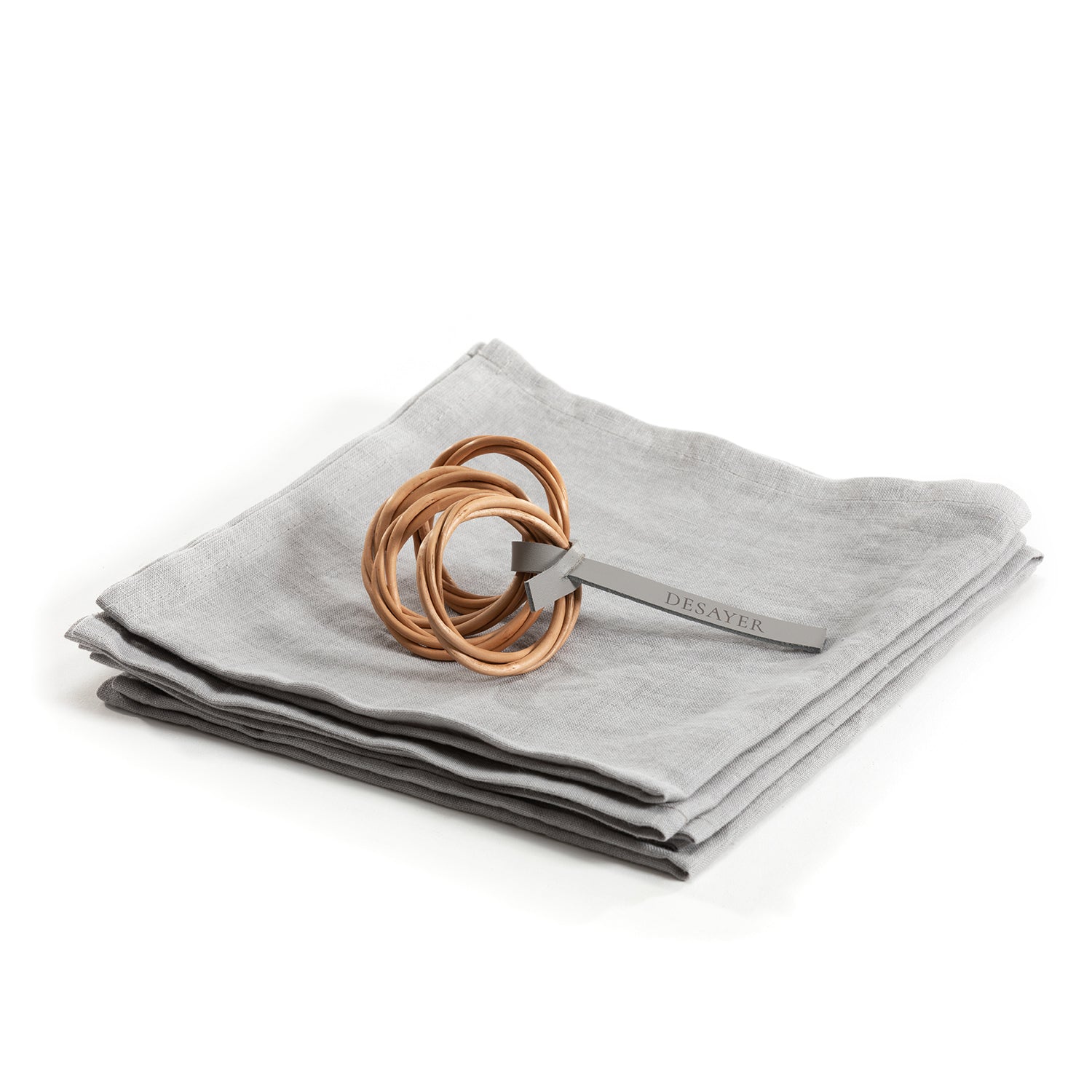 Amira wiklinowy pierścień do serwetek z lnianymi serwetkami, szary zestaw 4 szt. TheWickerStories