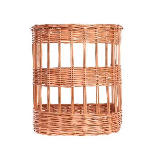 Wykonany ręcznie z ekologicznej, pełnej wikliny, kosz łączy tradycyjne rzemiosło z trwałością. Surowiec z europejskich plantacji jest lekki, a przy tym wyjątkowo solidny i odporny na codzienne użytkowanie. Gładko wykończone krawędzie i równy splot świadczą o jakości. Każdy egzemplarz to unikalne, europejskie rękodzieło.