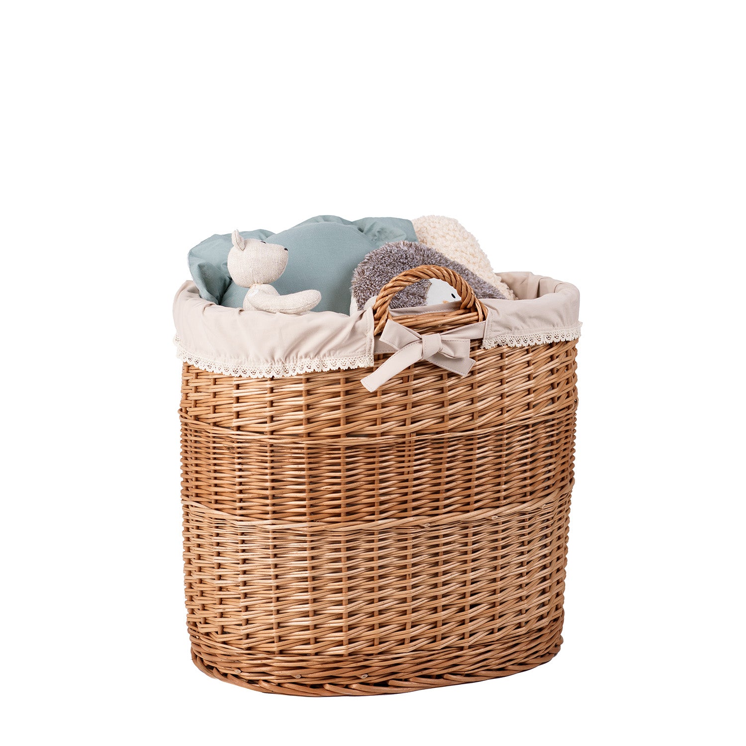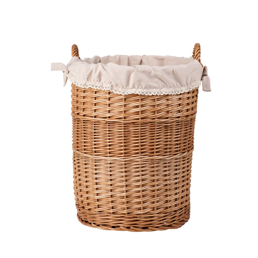Celia wiklinowy kosz dekoracyjny do przechowywania z beżowym obszyciem TheWickerStories