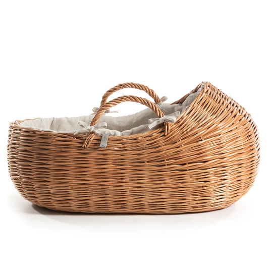 Desayer wiklinowe łóżeczko przewijak dla dzieci z beżowym obszyciem TheWickerStories