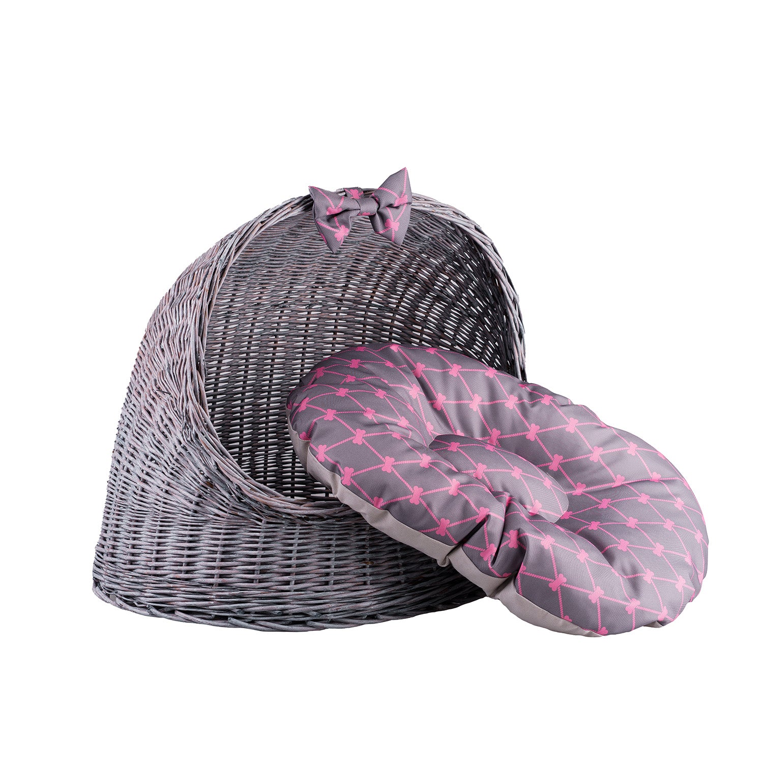 Elarion wiklinowy domek dla kota i małego psa, z poduszką TheWickerStories