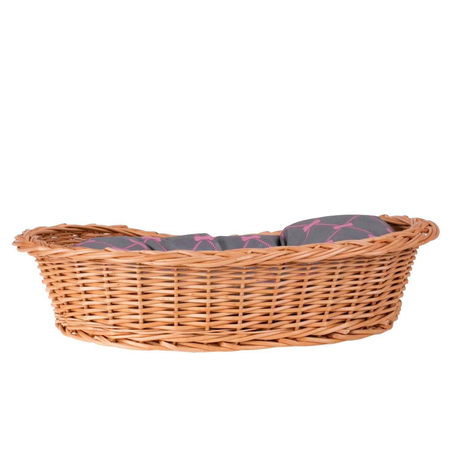 Enovia wiklinowy kosz dla psa i kota z poduszką, z niskim wejściem TheWickerStories