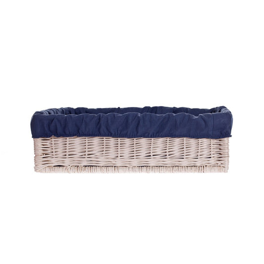 Epimoria wiklinowe legowisko dla psa i kota z granatowym obszyciem i poduszką, z niskim wejściem TheWickerStories