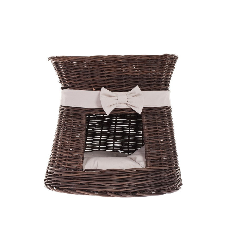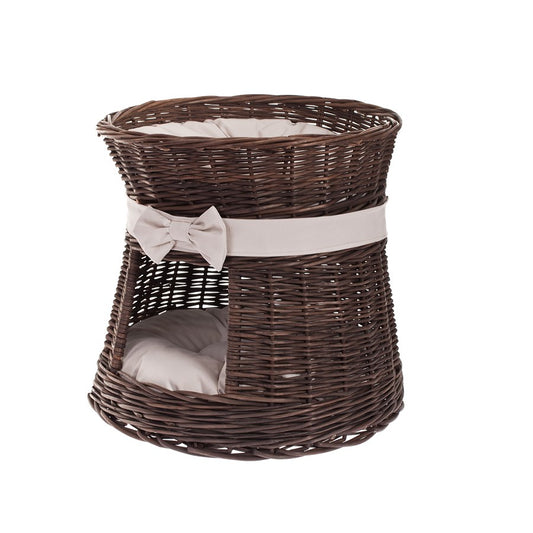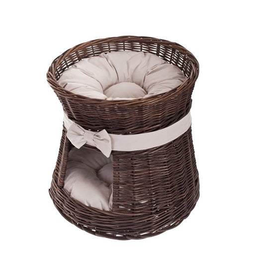 Eralis wiklinowy domek dla kota dwupoziomowy, z poduszkami i kokardą TheWickerStories