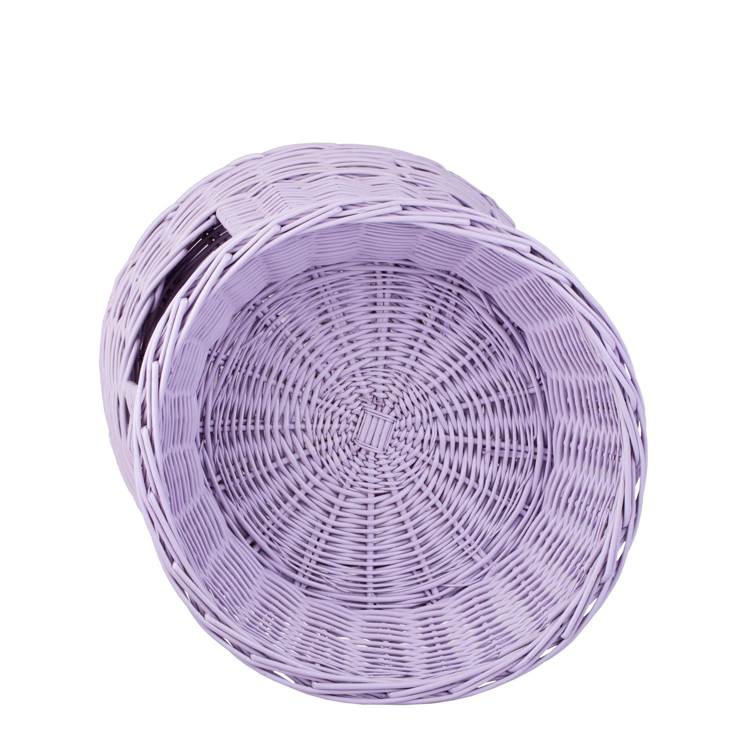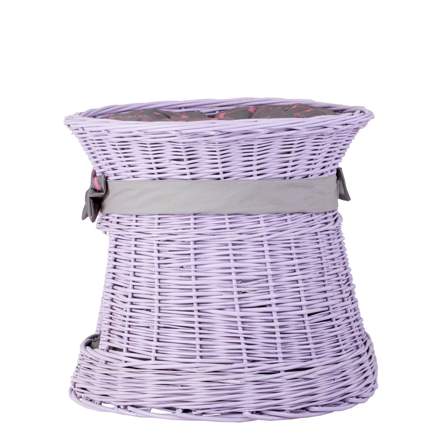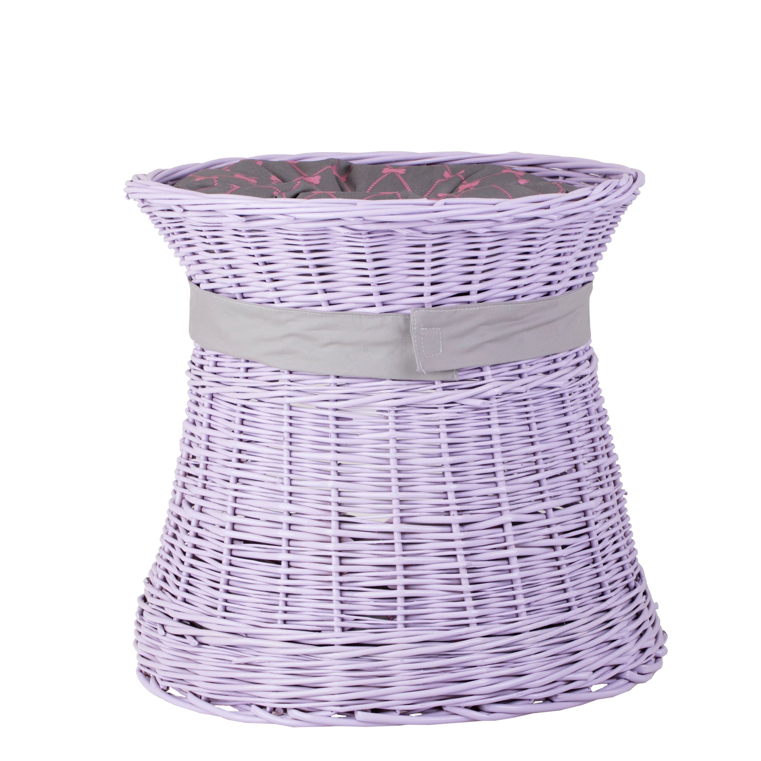 Czyszczenie jest proste: wiklinę wystarczy przetrzeć suchą lub wilgotną ściereczką i miękką szczotką, a poszycie poduszek wykonano z wodoodpornej tkaniny. Pastelowy fiolet subtelnie zdobi salon, sypialnię czy pokój dziecięcy. Wymiary: średnica 48 cm, wysokość 43 cm – idealne dla kotów i małych psów. Lekka konstrukcja ułatwia przestawianie między pomieszczeniami.