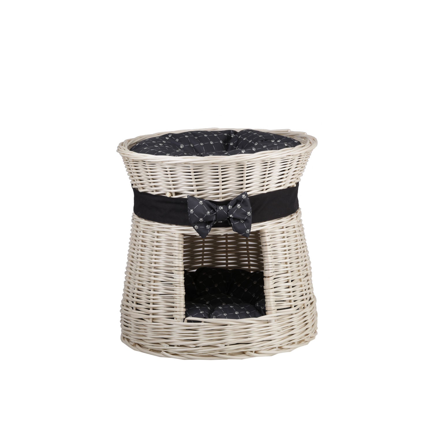 Eralis wiklinowy domek dla kota z poduszkami i kokardą, dwie kondygnacje TheWickerStories