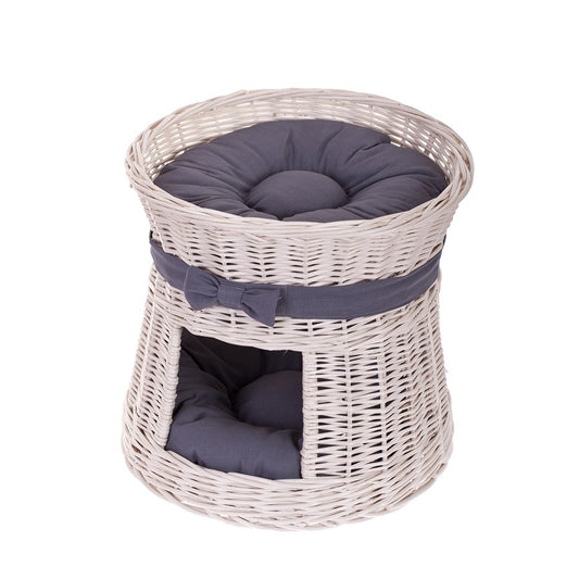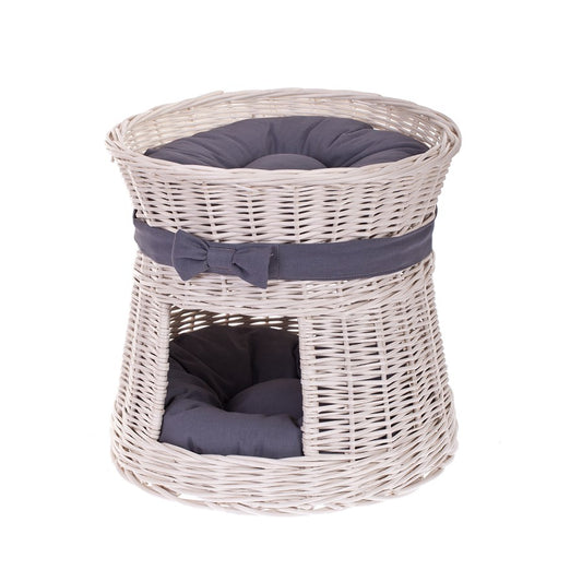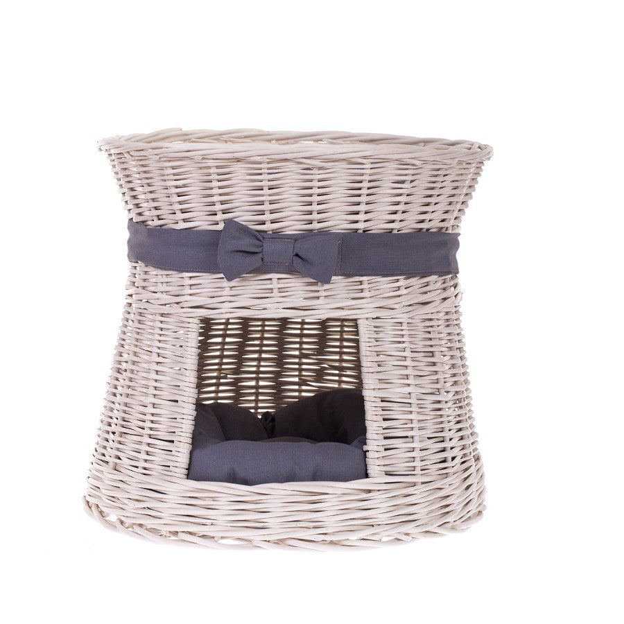 Eralis wiklinowy domek dla kota z poduszkami i kokardą TheWickerStories