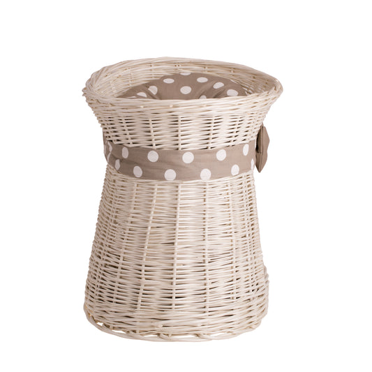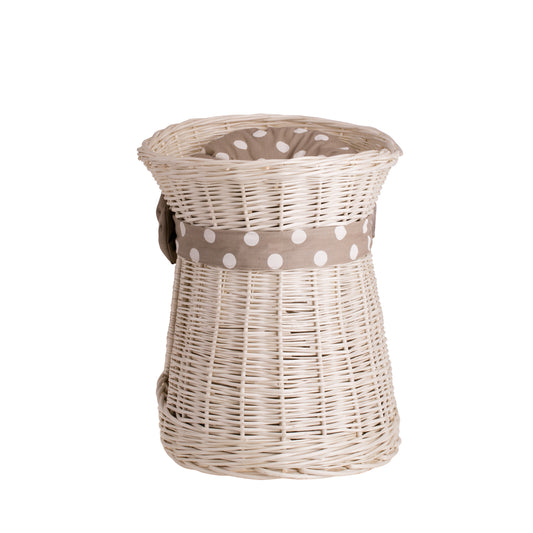 Do wykonania użyto europejskiej wikliny pozyskiwanej z odnawialnych upraw. Każdy egzemplarz to ręczne rzemiosło – solidnie spleciony, stabilny i naturalnie przewiewny. Wiklina jest lekka, a zarazem odporna na codzienne użytkowanie. To ekologiczny wybór dla domu przyjaznego naturze; możliwe są drobne różnice kolorystyczne.
