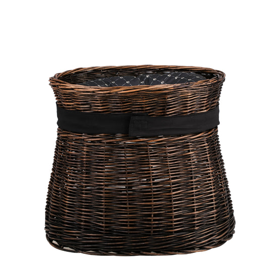 Dwie wodoodporne poduszki zwiększają komfort o każdej porze roku – miękkie, sprężyste i przyjemne w dotyku. Stabilna baza trzyma formę, dzięki czemu kosz stoi pewnie na podłodze, a dekoracyjna kokarda czyni z niego element wystroju. Wymiary 50x40 H45 cm ułatwiają ustawienie w salonie, sypialni lub przedpokoju, także w mniejszych mieszkaniach. Ciemny odcień współgra z jasnymi i drewnianymi meblami, wprowadzając naturalny, przytulny akcent.
