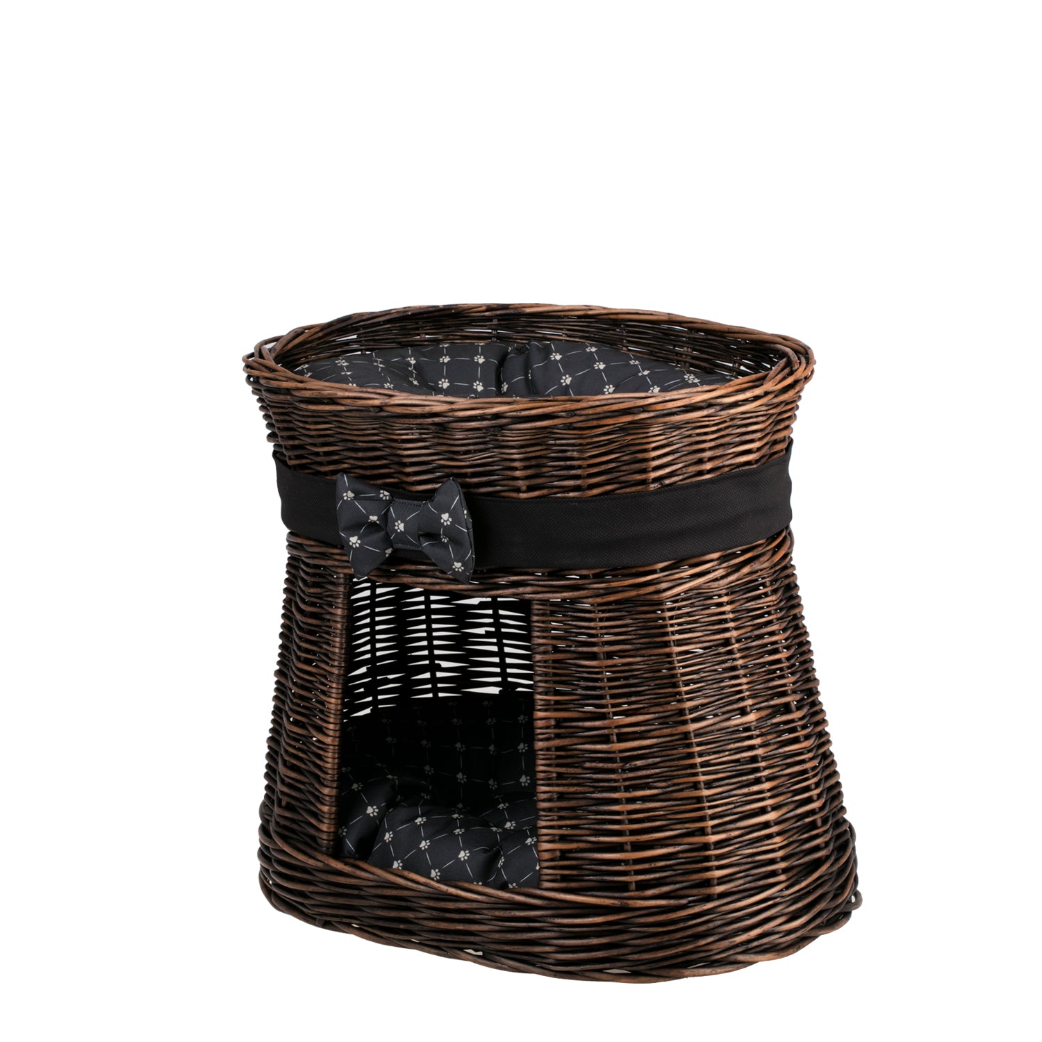 Specyfikacja Twojego Erif wiklinowy domek dla kota z dwiema kondygnacjami, z poduszkami i kokardą TheWickerStories