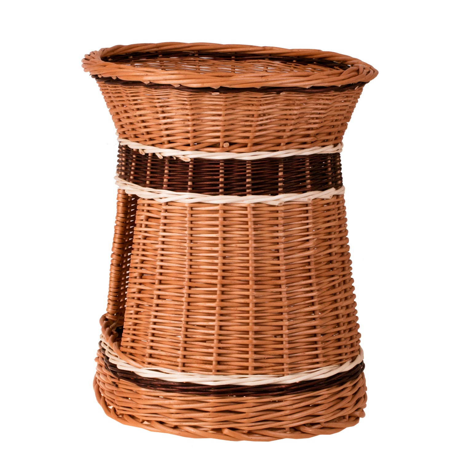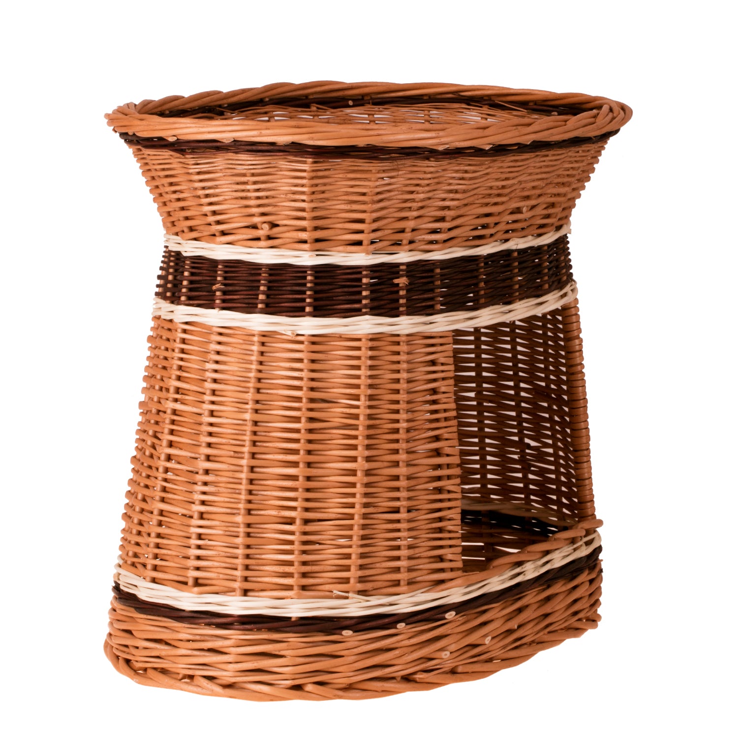 Kosz świetnie sprawdzi się w salonie, sypialni czy przy oknie, gdzie górny poziom staje się prawdziwym punktem widokowym. Naturalny charakter wikliny pasuje do wnętrz skandynawskich, boho i nowoczesnych. Produkt jest lekki, więc wygodnie go przestawisz podczas sprzątania. Wymiary ok. 50 × 40 × 45 cm (wys.) pozwalają wkomponować domek w mniejsze i większe przestrzenie.