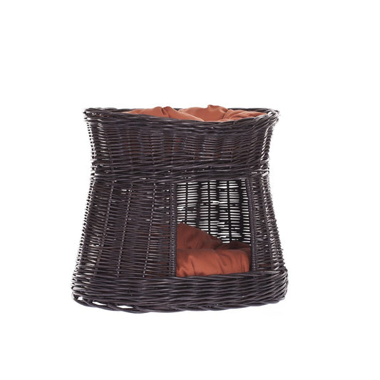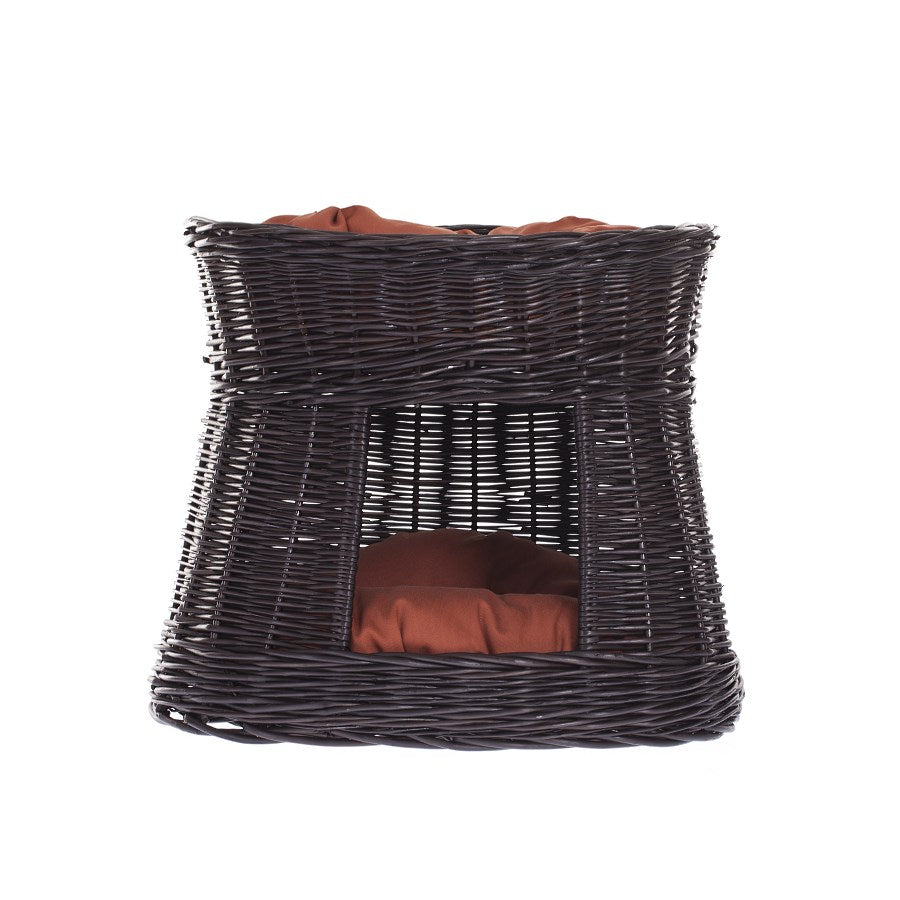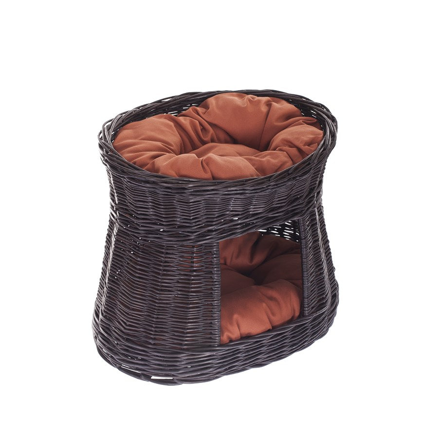 Erif wiklinowy domek dla kota z rdzawymi poduszkami, dwupoziomowy TheWickerStories
