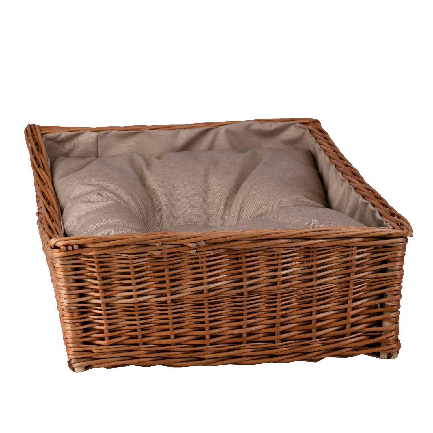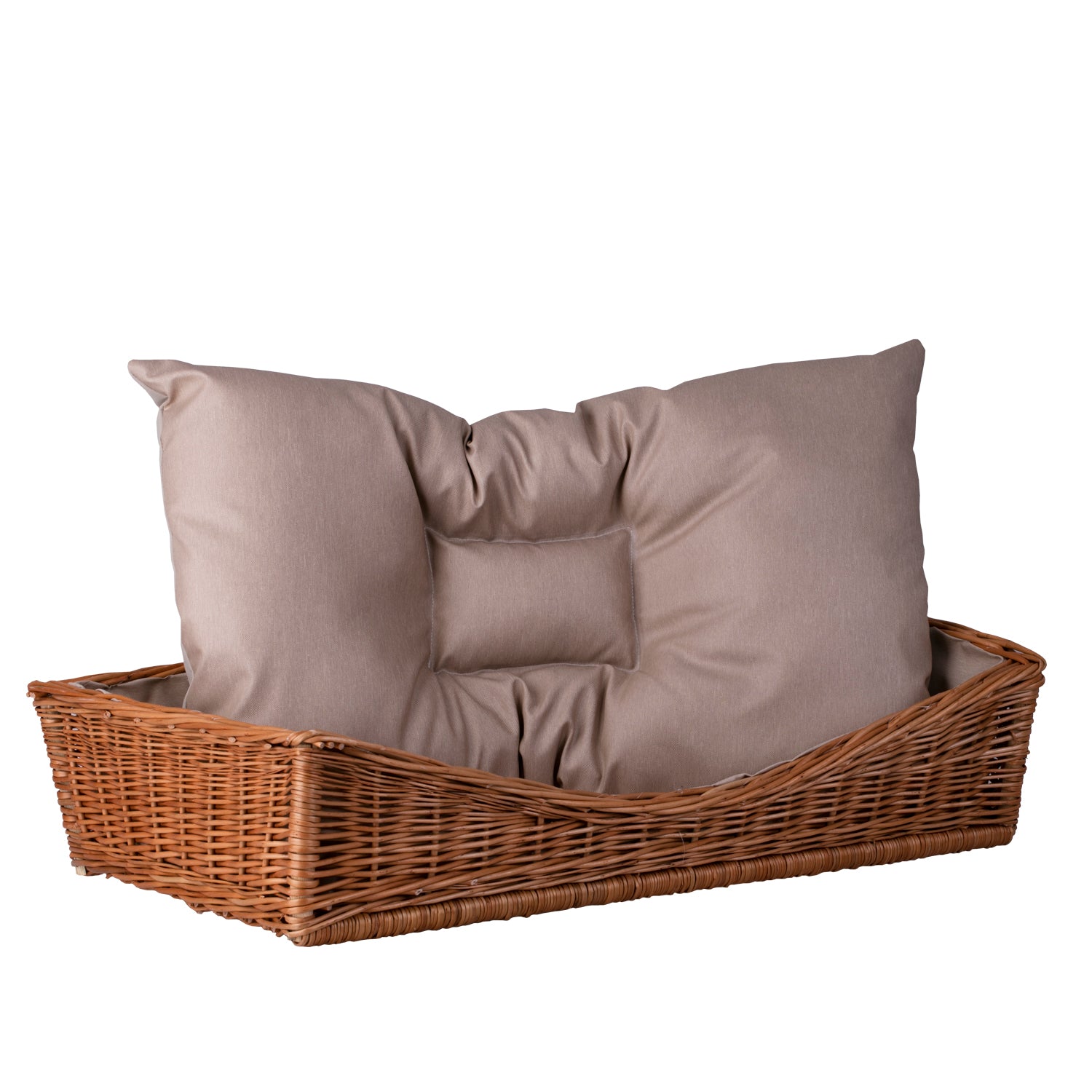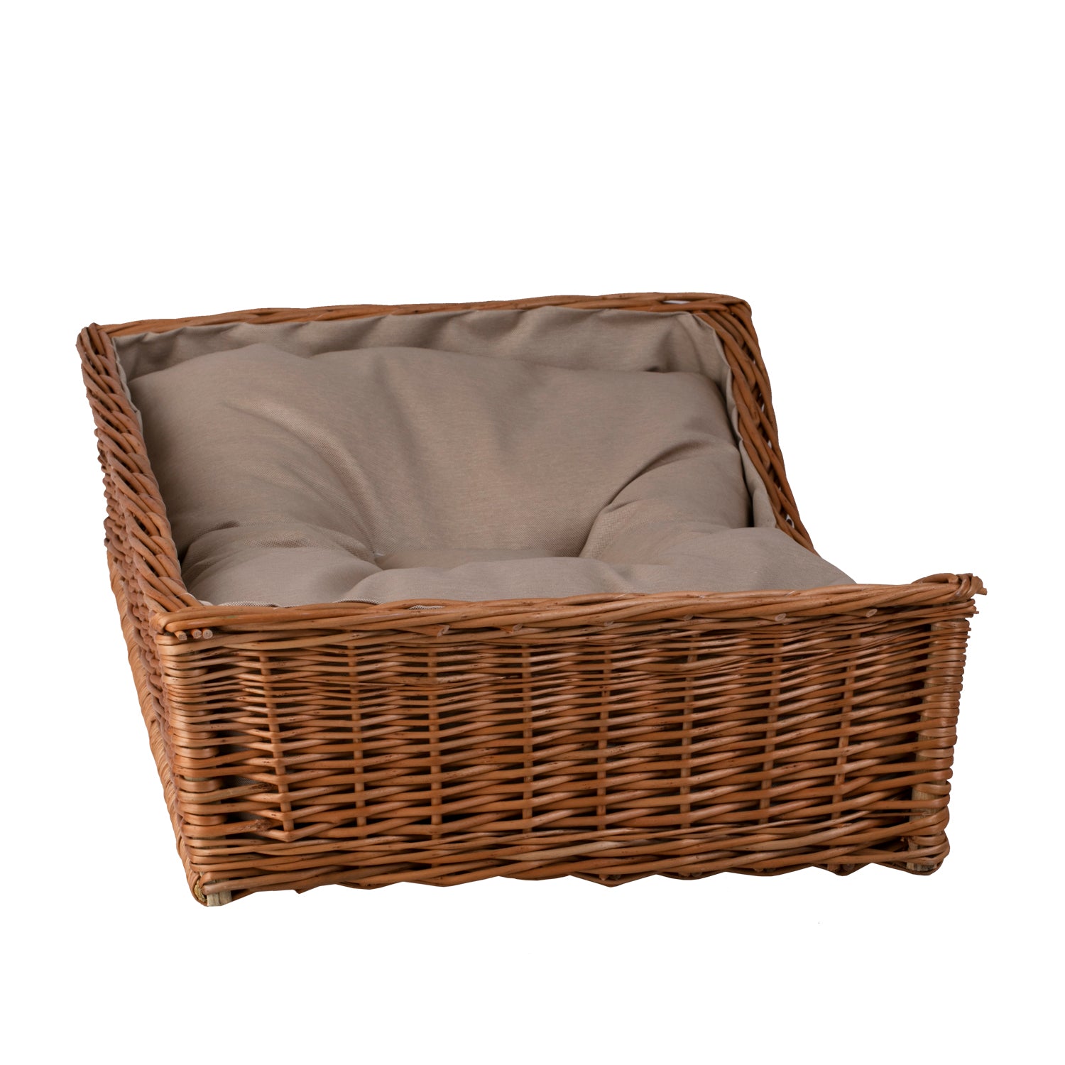 Eris wiklinowy kosz dla psa i kota z beżowym obszyciem i poduszką TheWickerStories