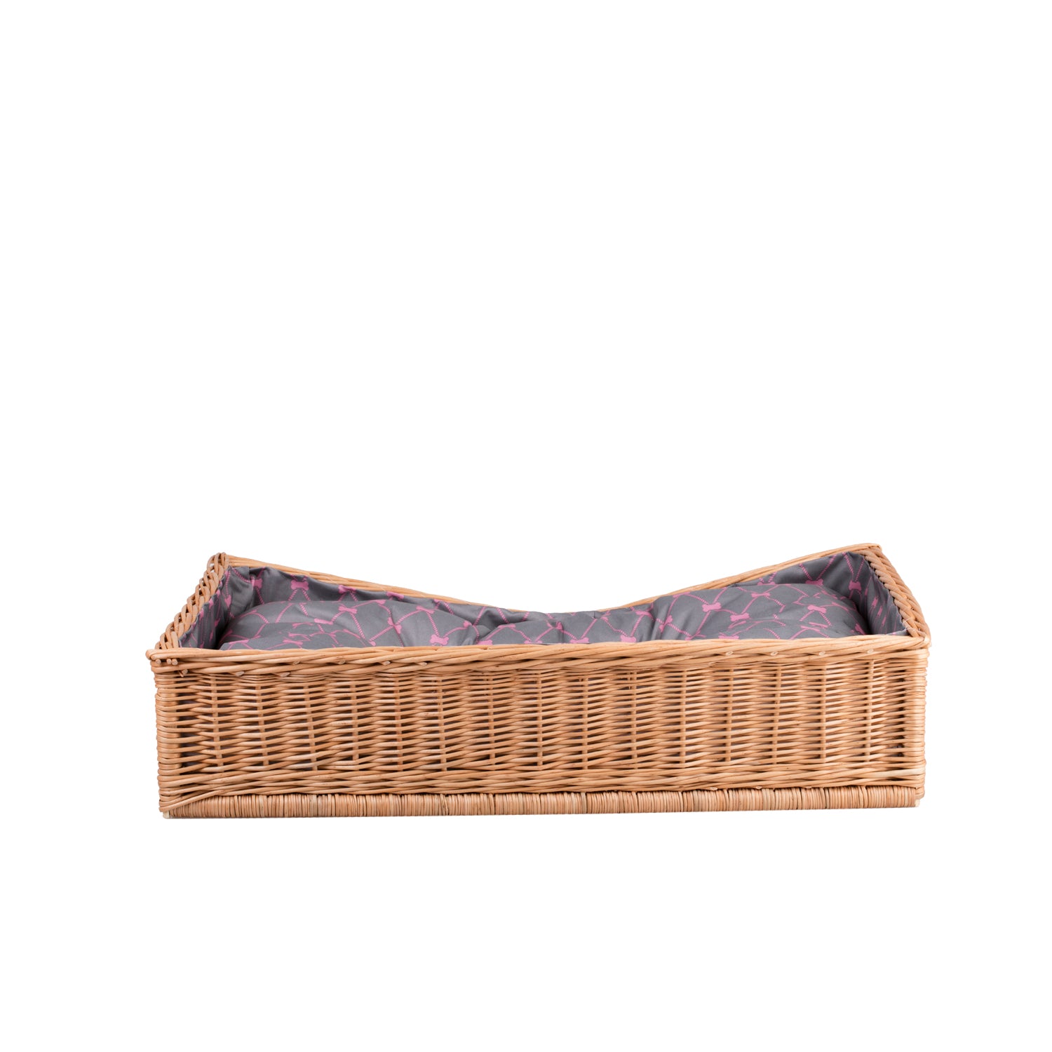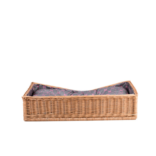 Eris wiklinowy kosz dla psa i kota z szarą poduszką, z obniżonym wejściem TheWickerStories