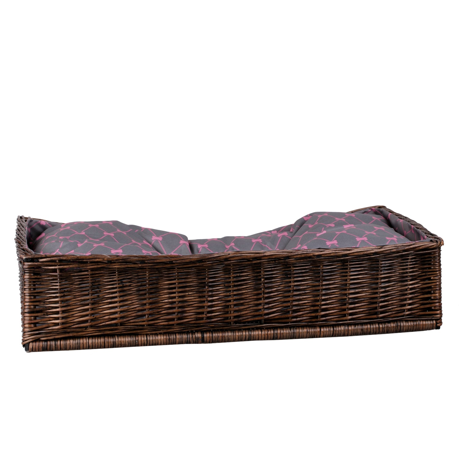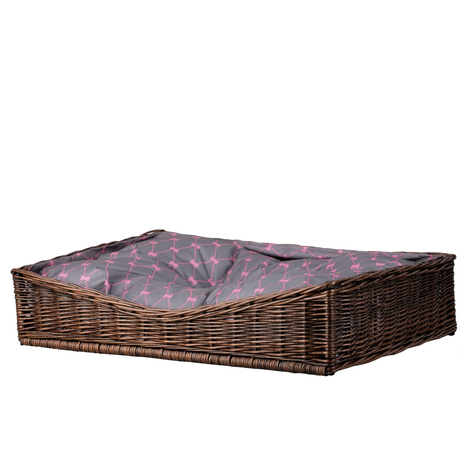 Eris wiklinowy kosz dla psa i kota z szarą, wodoodporną poduszką TheWickerStories