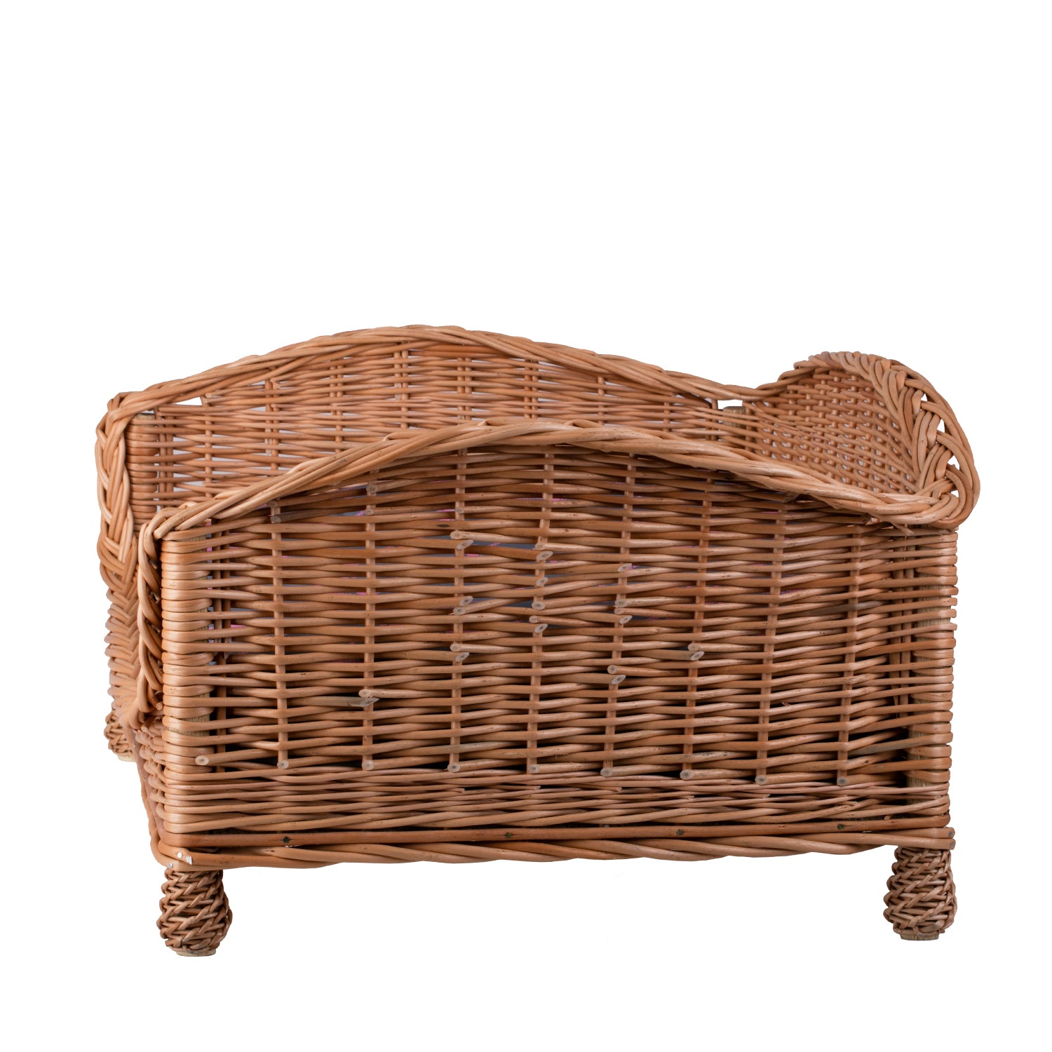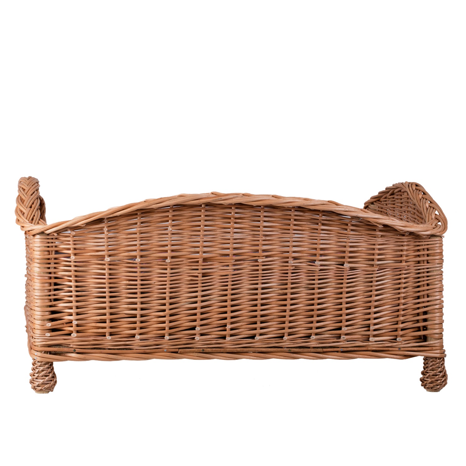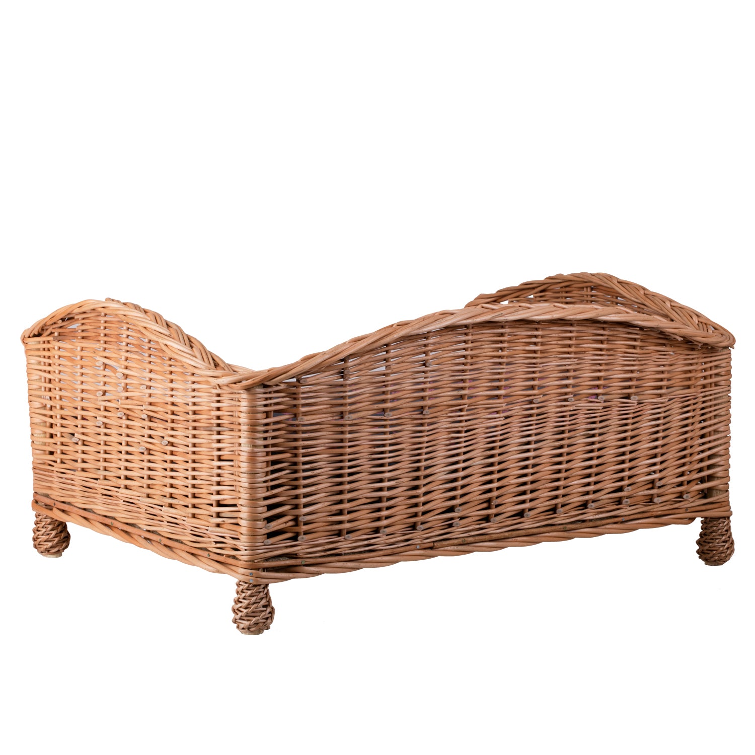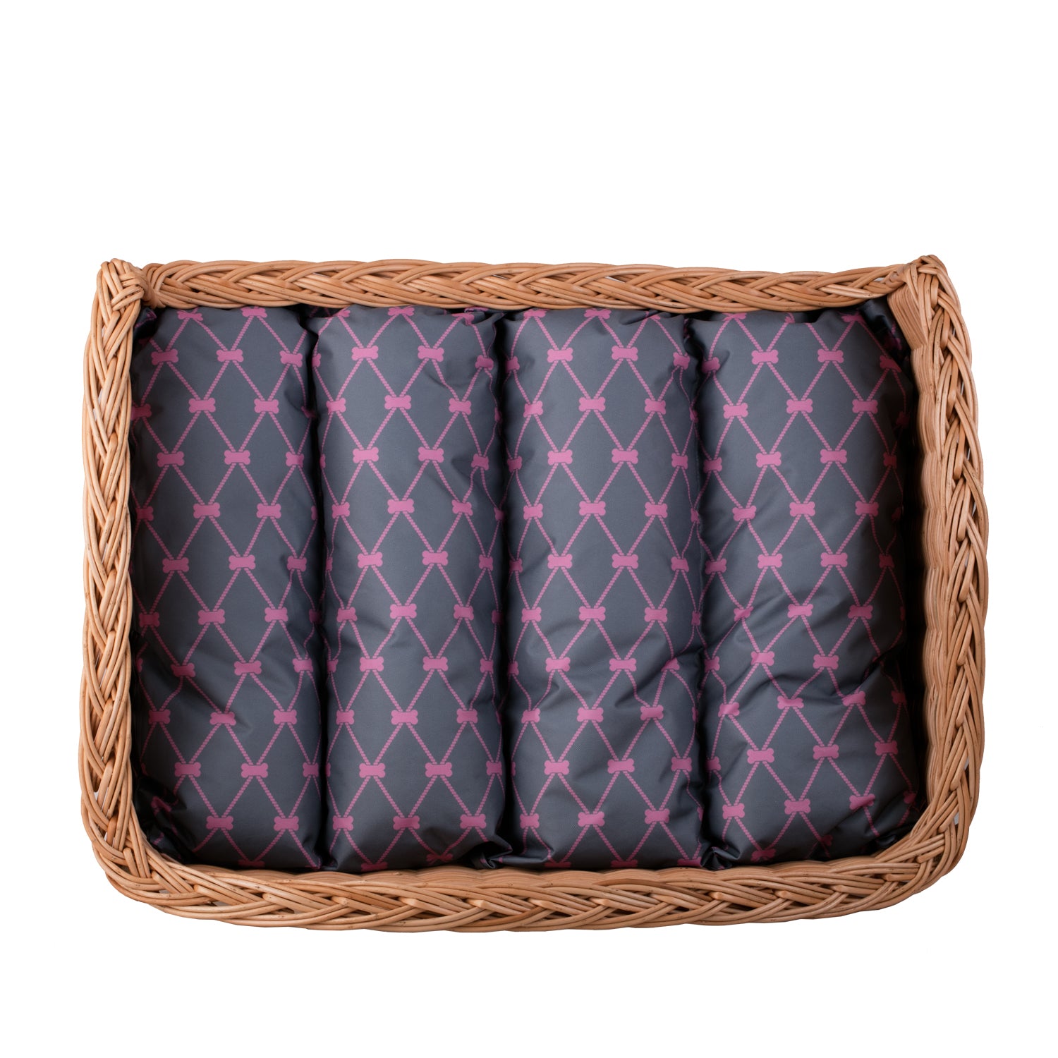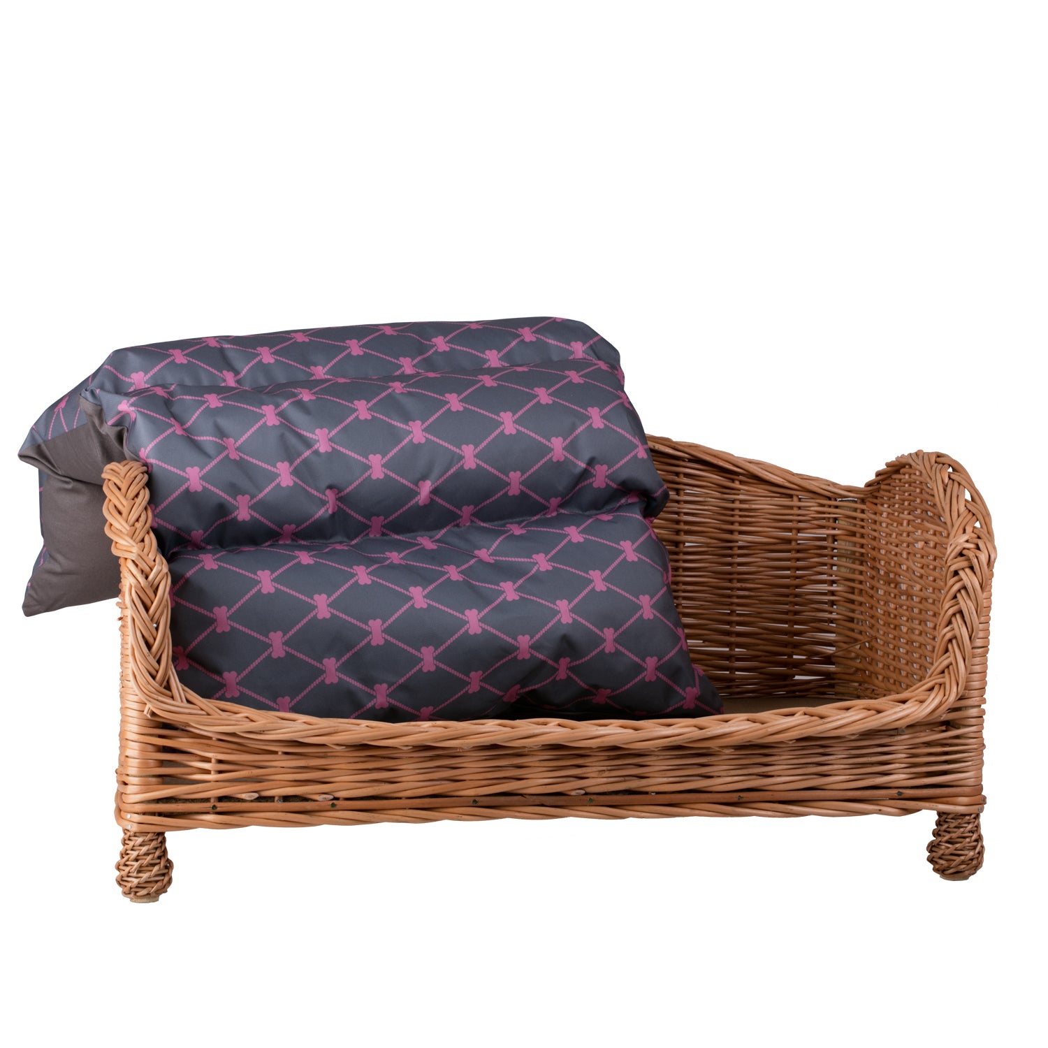 Erivia wiklinowy kosz dla psa i kota z szarą poduszką i niskim wejściem TheWickerStories
