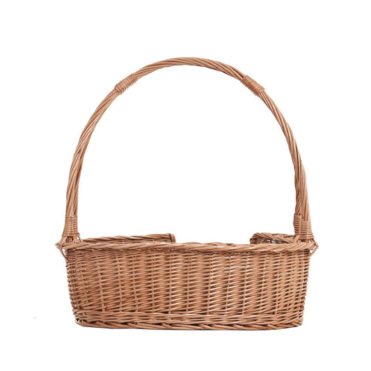 Kosz powstaje z europejskiej wikliny pochodzącej z odpowiedzialnych upraw, materiału naturalnego, odnawialnego i w pełni biodegradowalnego. Każdy egzemplarz jest ręcznie pleciony przez doświadczonych rzemieślników, dzięki czemu łączy lekkość z wyjątkową trwałością. Solidnie wzmocniona krawędź i owinięta rączka zapewniają pewny chwyt i długie lata użytkowania. Miła w dotyku powierzchnia jest bezpieczna dla łap.