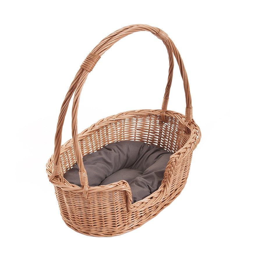 Esmira wiklinowy kosz legowisko dla psa i kota z rączką, z szarą poduszką TheWickerStories