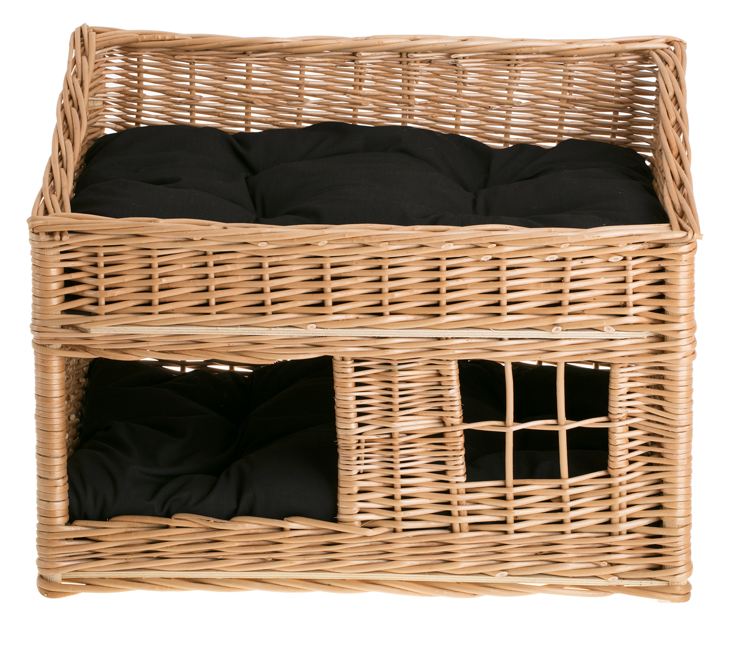 Estrella wiklinowy domek dla kota z dwiema poduszkami, dwupoziomowy TheWickerStories