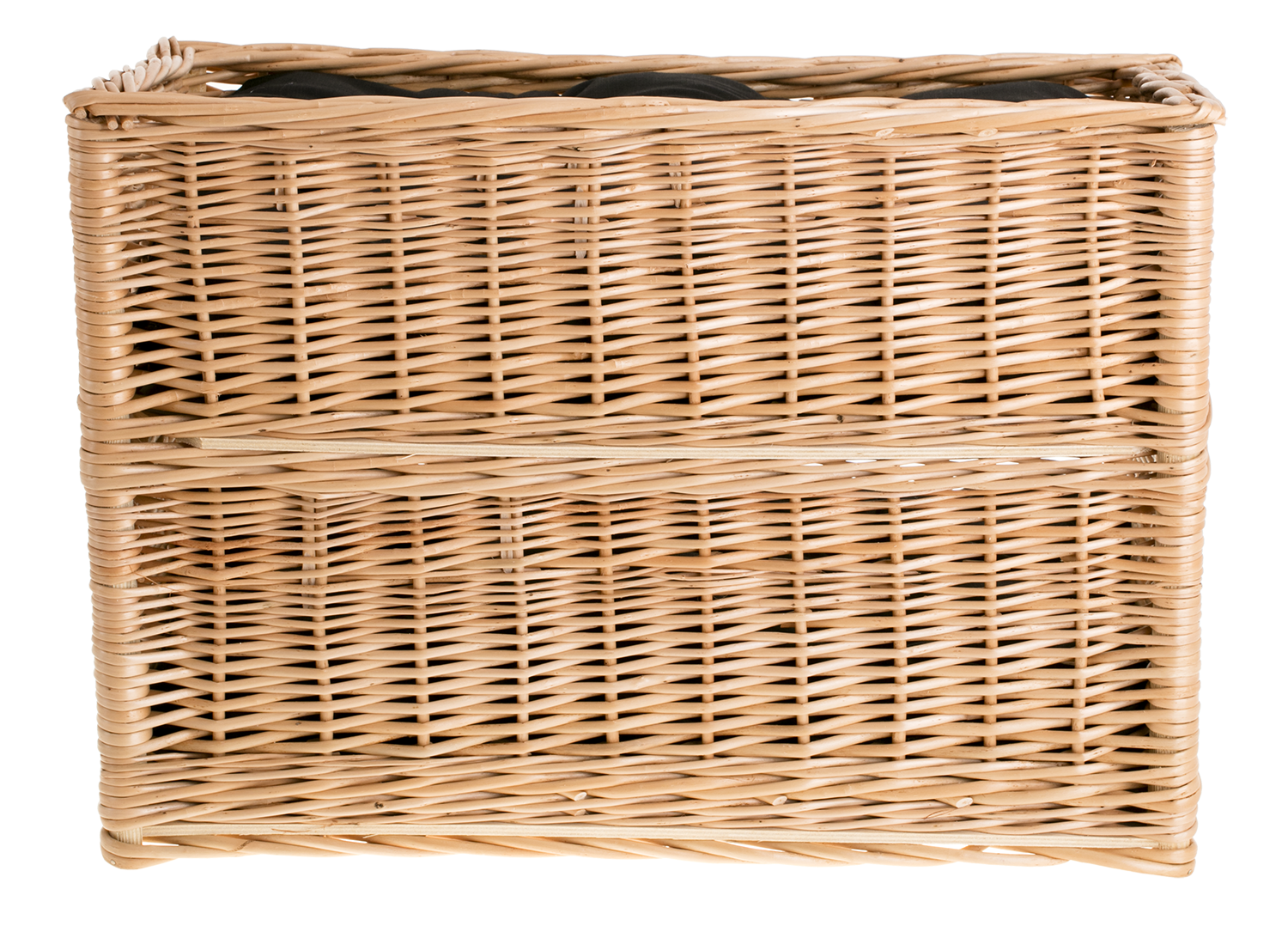 Produkt powstał z europejskiej wikliny pochodzącej z odnawialnych plantacji, dzięki czemu to wybór ekologiczny i bezpieczny dla domowych przestrzeni. Każdy egzemplarz jest ręcznie pleciony przez doświadczonych rzemieślników w UE, co widać w równych przeplotach, gładkich krawędziach i starannie wykończonych narożach. Naturalny materiał jest wytrzymały, sprężysty i zapewnia przyjemną cyrkulację powietrza.