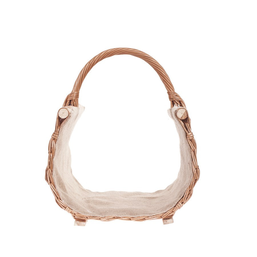 Fano wiklinowy kosz na drewno kominkowe z jutowym obszyciem, z rączką TheWickerStories