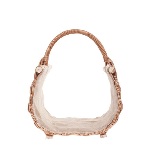 Elegancki wiklinowy kosz na drewno kominkowe zachwyca dopracowanym splotem i starannym wykończeniem. Boki tworzą stabilną osłonę, a wnętrze wyłożone jest grubym jutowym obszyciem, które zatrzymuje drobinki kory i popiołu. Szeroka, mocna rączka zapewnia pewny chwyt. Stabilna podstawa pozwala bezpiecznie odstawić kosz przy palenisku.