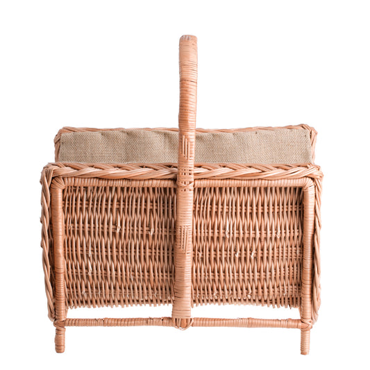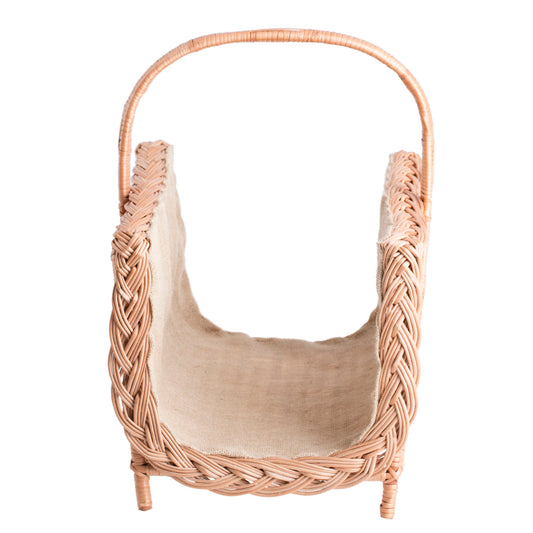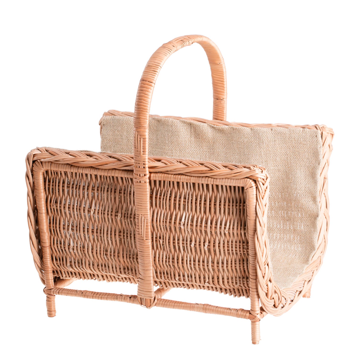 Ferla wiklinowy kosz na drewno kominkowe z jutowym obszyciem, z rączką TheWickerStories