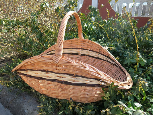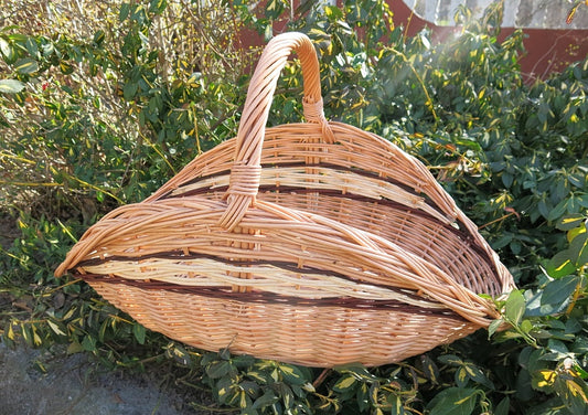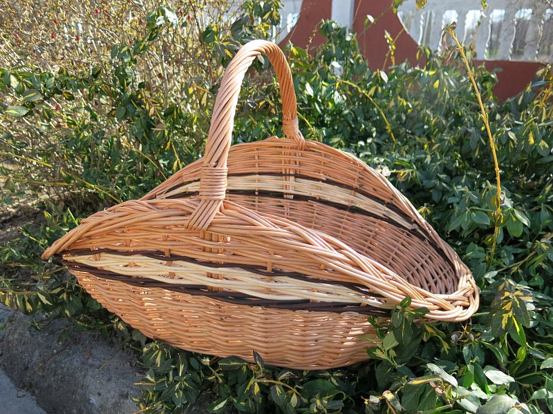 Do wykonania kosza wykorzystano selekcjonowaną, europejską wiklinę – surowiec odnawialny o niskim śladzie środowiskowym. Każdy egzemplarz powstaje w procesie tradycyjnego rzemiosła: doświadczony plecionkarz ręcznie dobiera i przeplata pręty, dbając o równe napięcie i czyste łączenia. Dzięki temu kosz jest trwały, ekologiczny i niepowtarzalny, a naturalny materiał pięknie dojrzewa wraz z użytkowaniem.