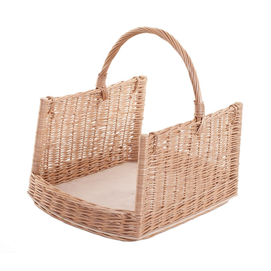 Fivell wiklinowy kosz na drewno kominkowe z rączką i drewnianym dnem TheWickerStories