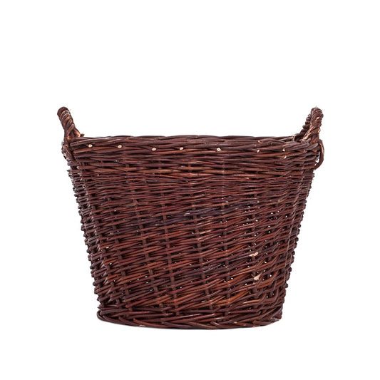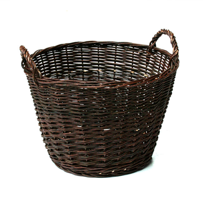 Klasyczny, pojemny kosz wiklinowy w odcieniu ciemnego brązu zachwyca naturalnym rysunkiem nieokorowanej wikliny. Gęsty, równy splot tworzy stabilne ścianki, a krawędź wykończono mocną plecionką. Dwa solidne, skręcane uchwyty ułatwiają chwyt, a szeroki otwór i stabilna podstawa zapewniają wygodny dostęp do zawartości. Przy średnicy ok. 50 cm i wysokości ok. 50 cm oferuje dużą pojemność, a jasne, naturalne akcenty pędów podkreślają rzemieślniczy charakter.