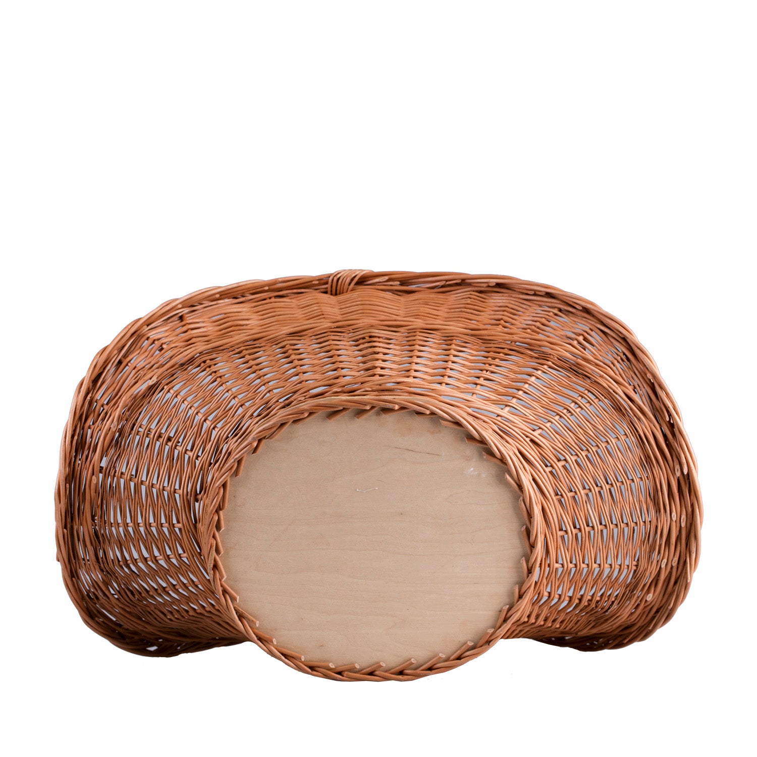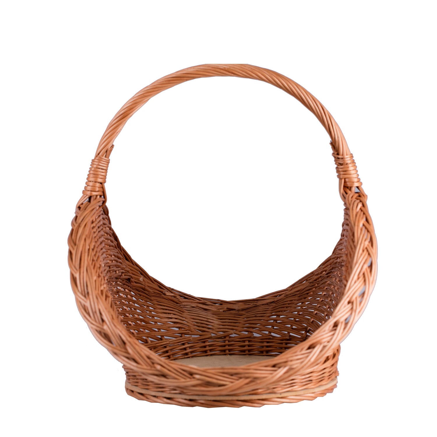 Kosz wiklinowy na drewno kominkowe zachwyca harmonijną, owalną linią i wywiniętymi bokami, które płynnie łączą się przy solidnym uchwycie. Gęsty, równy splot gwarantuje estetykę i stabilność, a krawędzie wzmocniono podwójną plecionką. Naturalny, miodowy odcień wikliny ociepla wnętrze, a szeroka, płaska podstawa zapewnia pewne ustawienie przy kominku. Uchwyt owinięto mocnym oplotem dla większej trwałości i wygody noszenia.