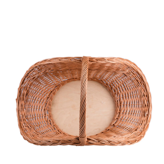 Poza sezonem to praktyczny kosz do przechowywania: schowasz w nim koce, poduszki, czasopisma lub zabawki. Sprawdzi się także podczas zbiorów – jako kosz na grzyby, owoce czy warzywa – oraz w roli dekoracyjnego kosza na kwiaty. Wymiary zewnętrzne: 70 × 46 × 31 cm (bez rączki); wysokość 48 cm z rączką. Delikatnie falujące krawędzie nadają formie lekkość i sprawiają, że kosz staje się naturalną ozdobą wnętrza.