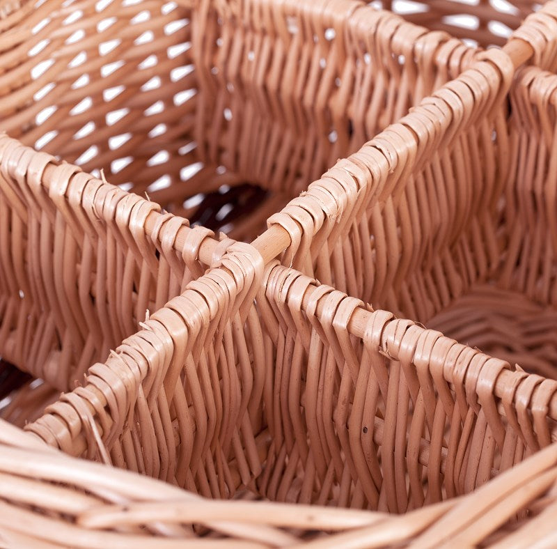 Dzięki sześciu przegrodom kosz umożliwia bezpieczne i stabilne przenoszenie butelek z napojami – wina, soków czy domowych przetworów. Solidna konstrukcja i ergonomiczny uchwyt zapewniają wygodę użytkowania zarówno w domu, jak i podczas pikników, spotkań rodzinnych czy zakupów. To doskonała alternatywa dla plastikowych transporterów.