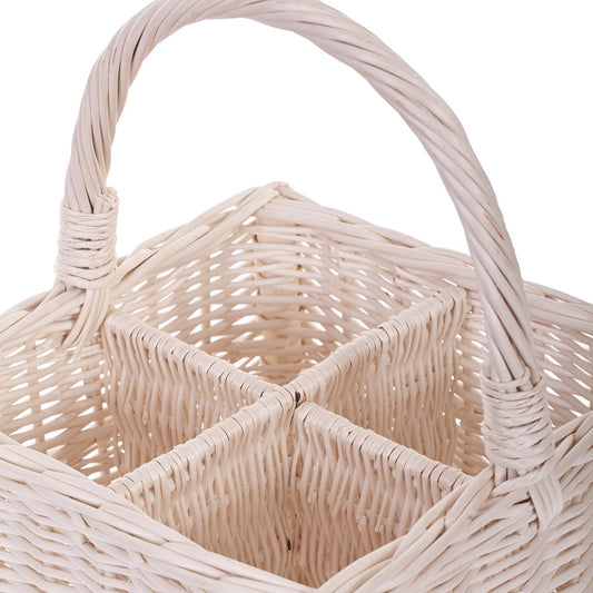 Dzięki czterem przegrodom kosz umożliwia bezpieczne i stabilne przenoszenie butelek z napojami – wina, soków czy domowych przetworów. Solidna konstrukcja i ergonomiczny uchwyt zapewniają wygodę użytkowania zarówno w domu, jak i podczas pikników, spotkań rodzinnych czy zakupów. To doskonała alternatywa dla plastikowych transporterów.