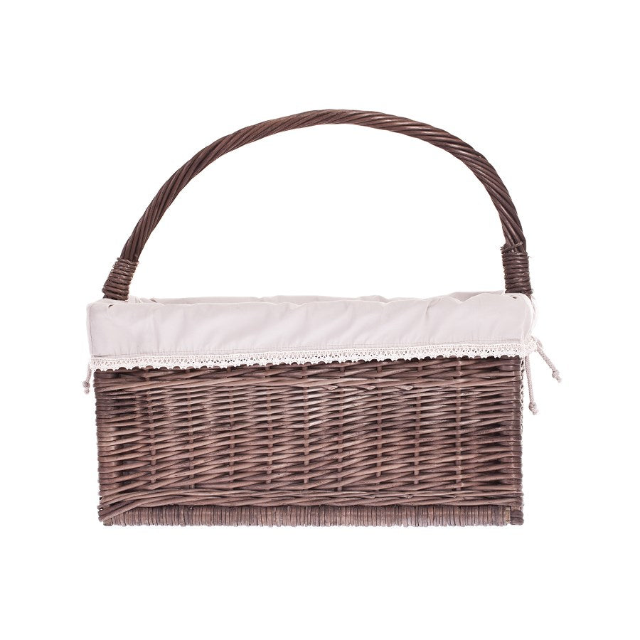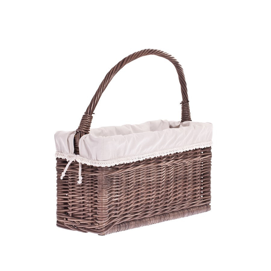 Gavis wiklinowy koszyk na czasopisma z beżowym obszyciem i rączką TheWickerStories