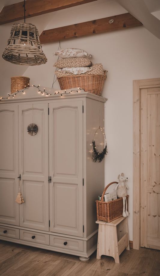 Naturalna wiklina nadaje wnętrzu przytulności i harmonii, a klasyczny design kosza sprawia, że pasuje do różnych stylów aranżacji – od nowoczesnych po rustykalne. To ekologiczny wybór, który łączy praktyczne przechowywanie z eleganckim wyglądem, wspierając jednocześnie tradycyjne, europejskie rzemiosło.