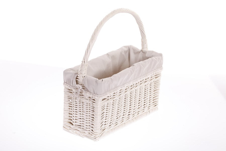 Ten ręcznie pleciony, ekologiczny kosz wiklinowy z rączką o wymiarach 45x18 cm i wysokości 23/41 cm to połączenie funkcjonalności, elegancji i tradycyjnego rzemiosła europejskiego. Wykonany z naturalnej wikliny, malowanej na biało, zachwyca klasycznym wyglądem i trwałością, stając się nie tylko praktycznym, ale również dekoracyjnym elementem wnętrza. Doskonale sprawdzi się jako organizer na czasopisma, gazety, książki czy drobne akcesoria w salonie, biurze lub kąciku czytelniczym.