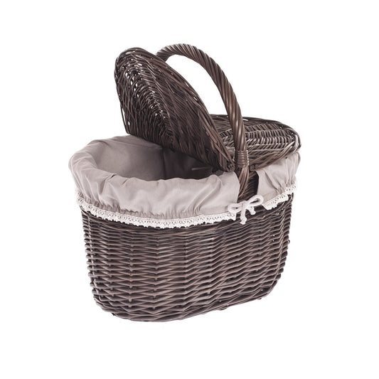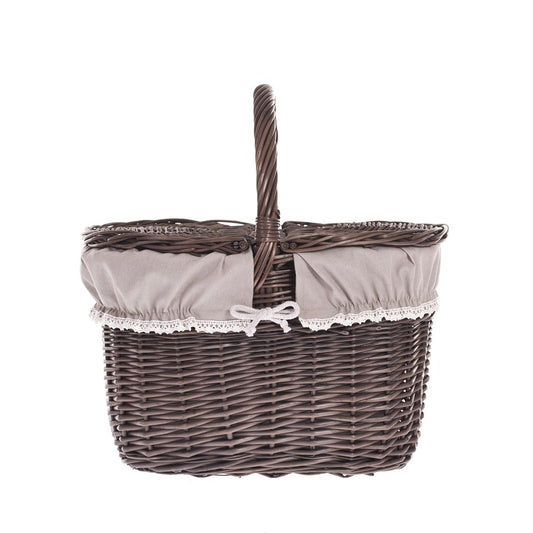Kastalia wiklinowy koszyk piknikowy z beżowym obszyciem i wiekiem TheWickerStories