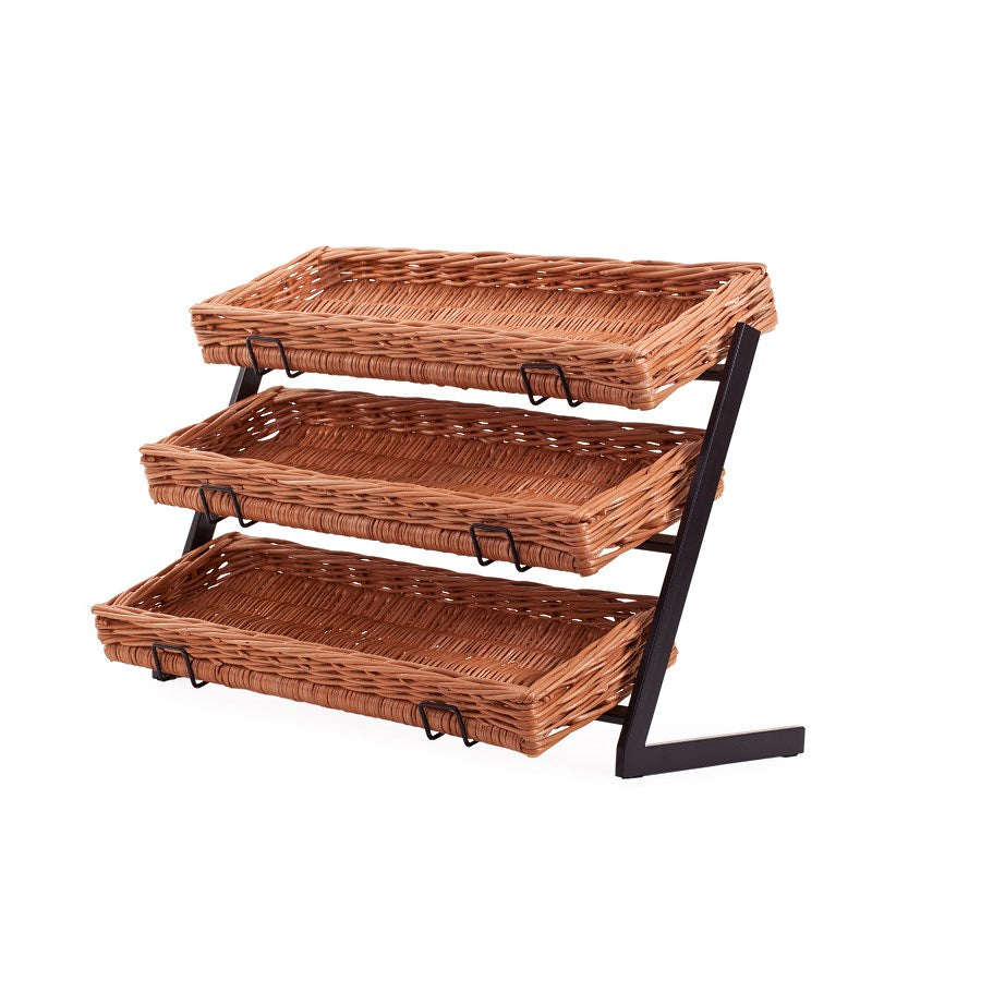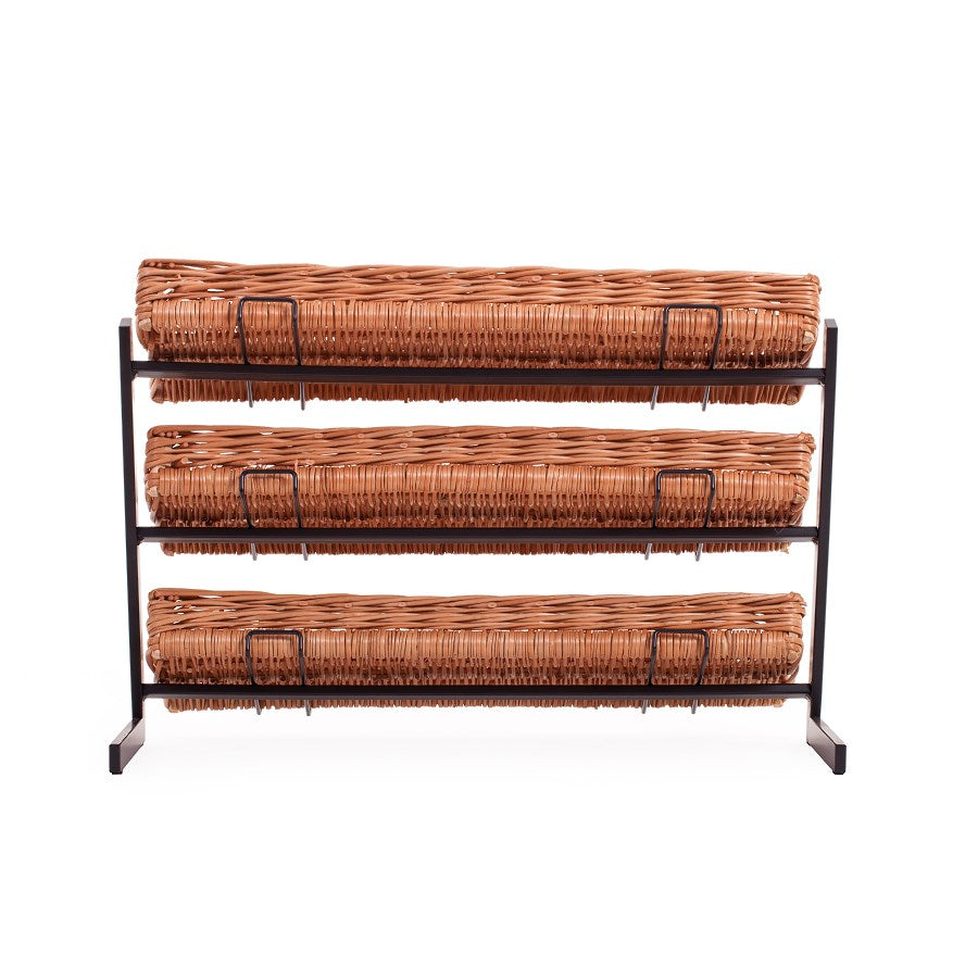 Ten elegancki, ekologiczny stojak metalowy z trzema wiklinowymi tacami to funkcjonalne rozwiązanie dla sklepów, piekarni i lokali HoReCa, które chcą zadbać o estetykę ekspozycji pieczywa, owoców czy drobnych produktów. Konstrukcja o wymiarach 64x34 H44 cm jest stabilna, a trzy ręcznie plecione tacki (60x20 H6 cm) zapewniają optymalne wykorzystanie przestrzeni, pozwalając na prezentację różnorodnego asortymentu w sposób przejrzysty i atrakcyjny. Naturalna wiklina współgra z nowoczesnym metalowym stelażem, tworząc harmonijne połączenie trwałości i tradycyjnego rzemiosła.
