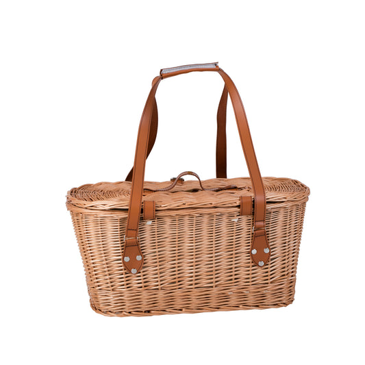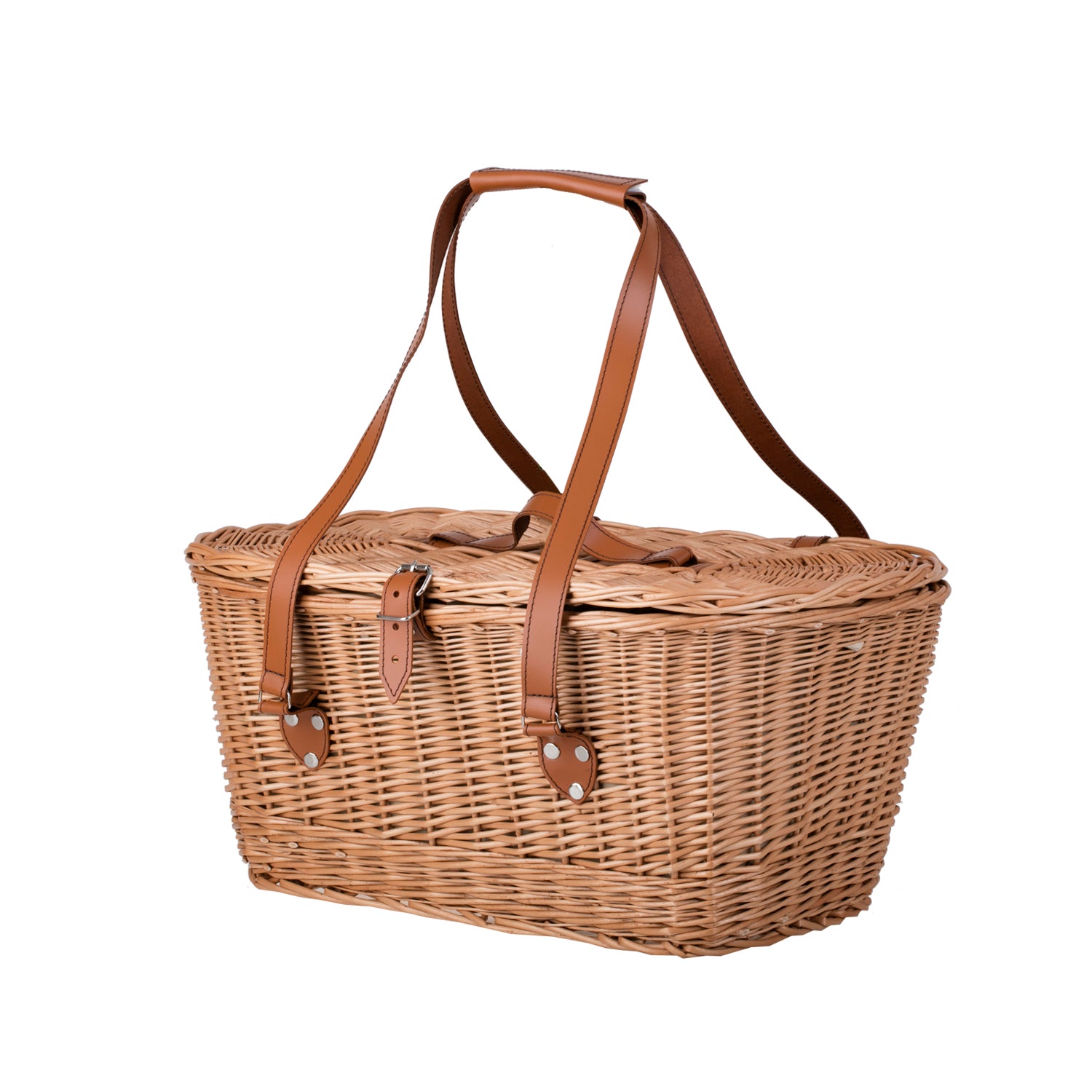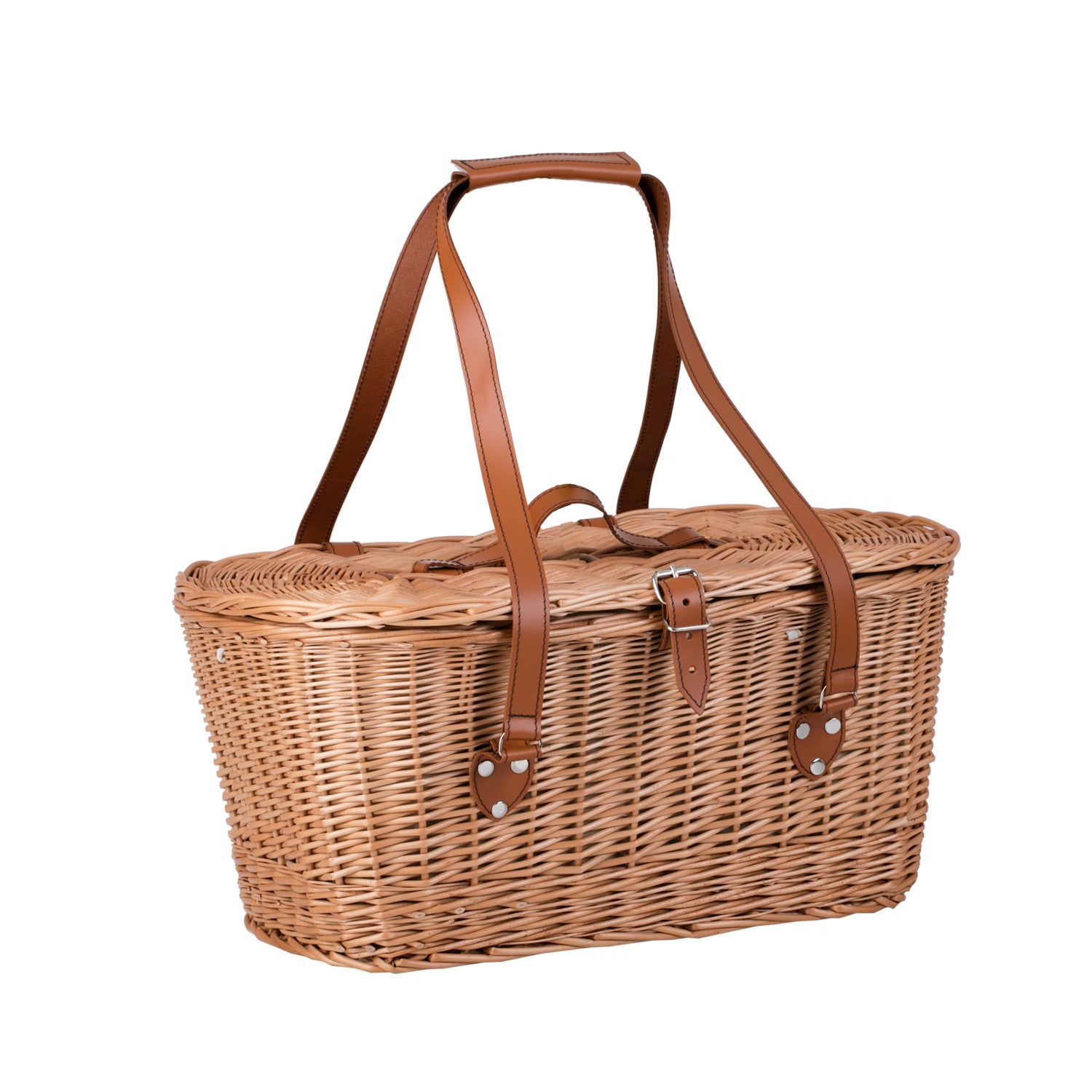 Kivara wiklinowy kosz piknikowy XXL z pokrywą i skórzanymi paskami TheWickerStories