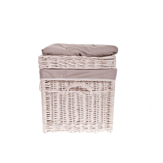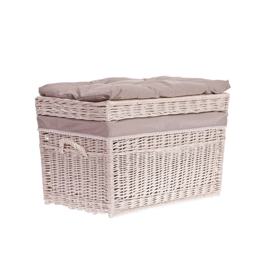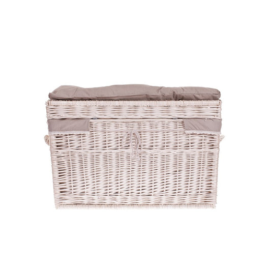 Kogia wiklinowy kosz z beżowym obszyciem, poduszką, rączkami i wiekiem TheWickerStories