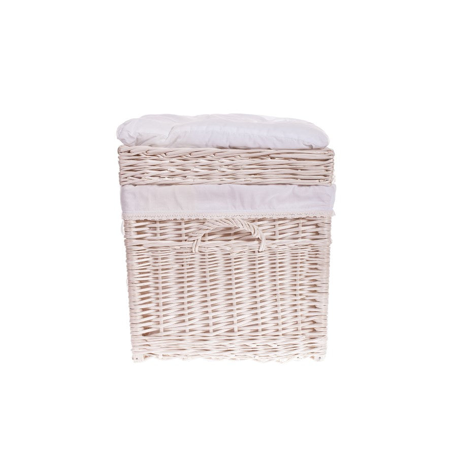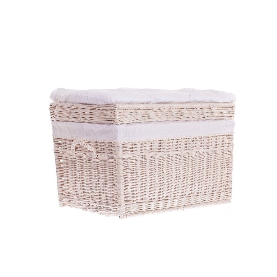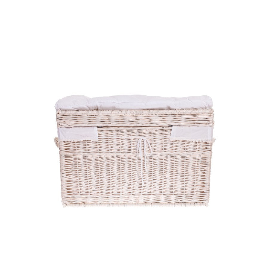 Kogia wiklinowy kosz z kremowym obszyciem, poduszką, rączkami i wiekiem TheWickerStories