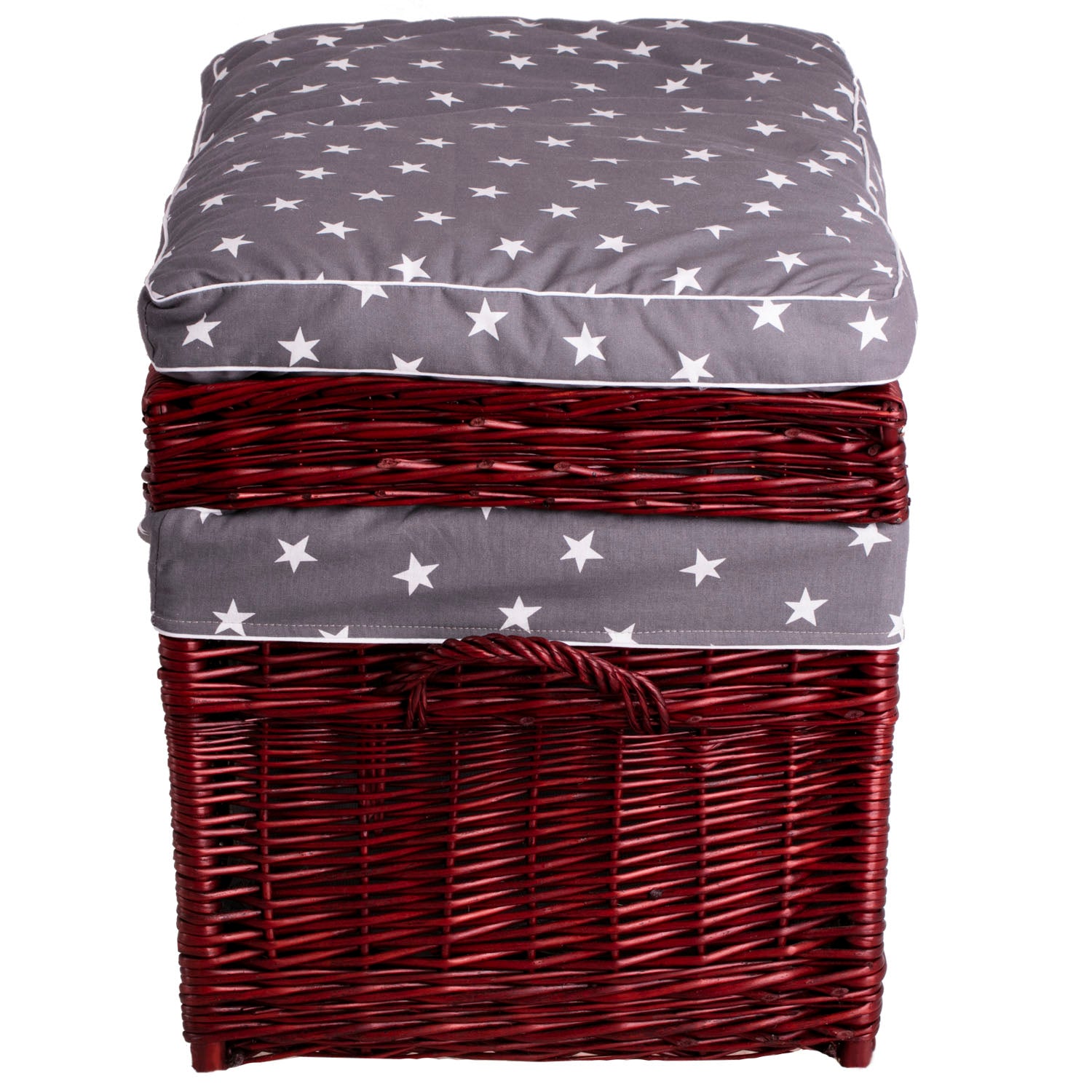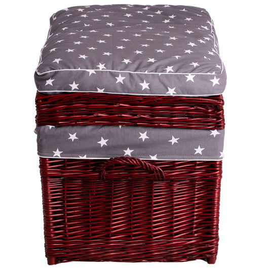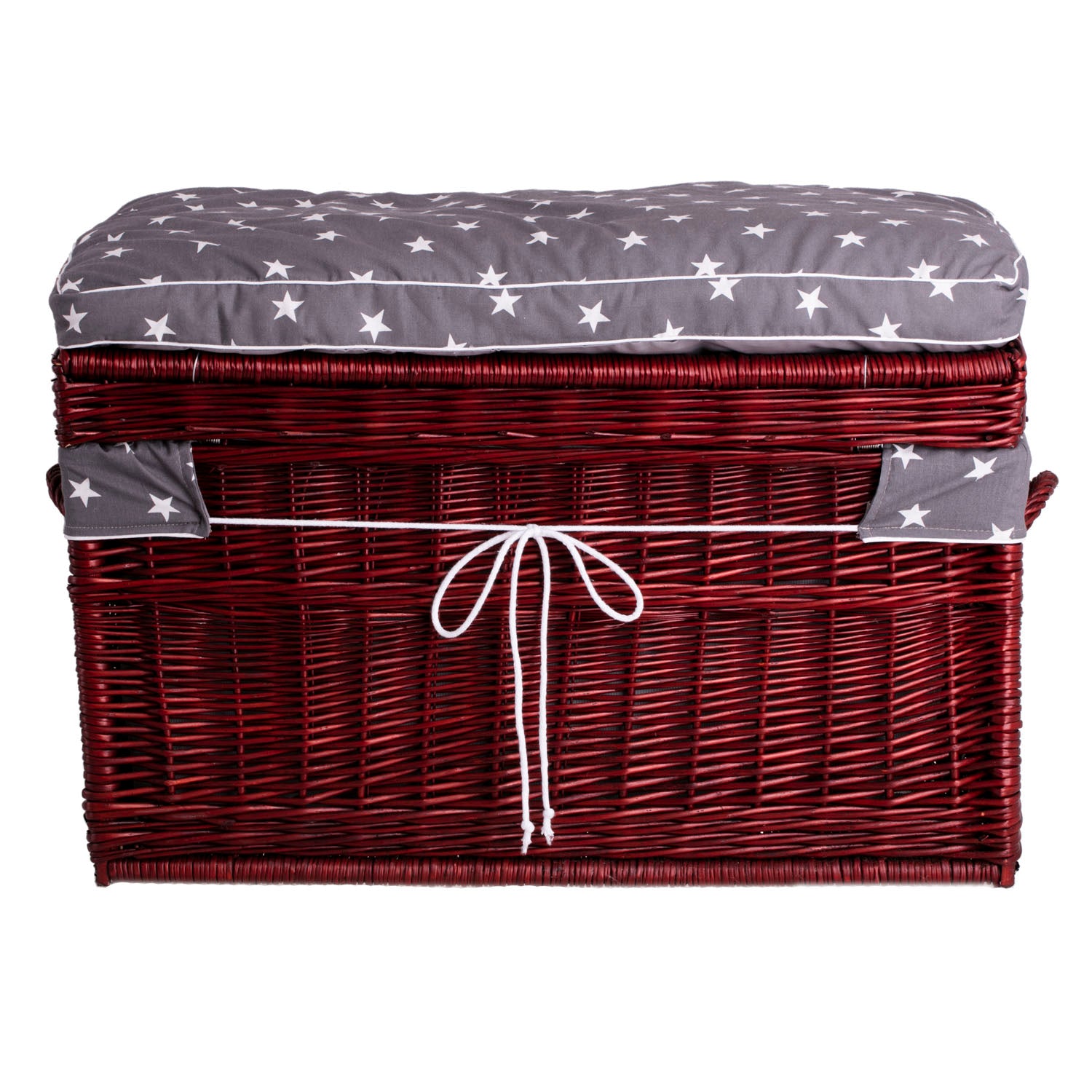 Kogia wiklinowy kosz z szarym obszyciem, poduszką, rączkami i wiekiem TheWickerStories