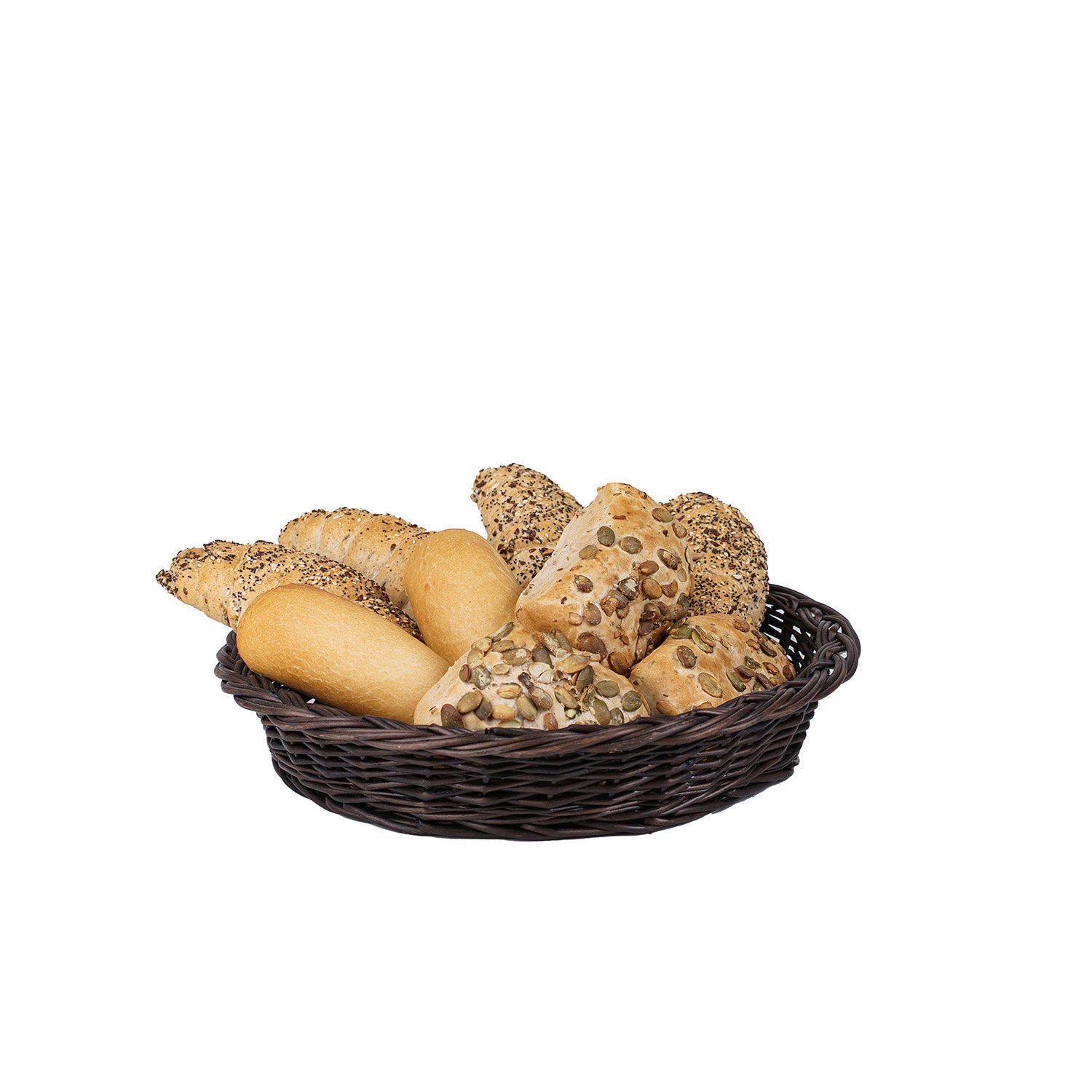 Praktyczne wymiary ułatwiają ustawienie nawet na niewielkiej powierzchni: średnica zestawu ok. Ø 70 cm, wysokość ok. 46 cm, łącznie 4 koszyki. Stojak jest wytrzymały i odporny na codzienne użytkowanie, a utrzymanie porządku zajmuje chwilę – wystarczy przetrzeć na sucho. Neutralna, ciemnobrązowa kolorystyka pasuje do nowoczesnych i tradycyjnych wnętrz, a produkt powstaje w UE w krótkim łańcuchu dostaw.