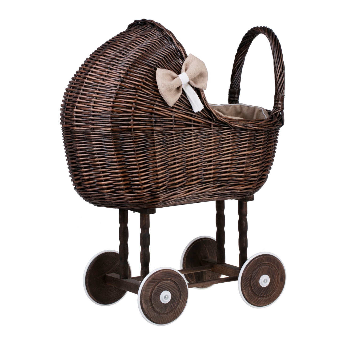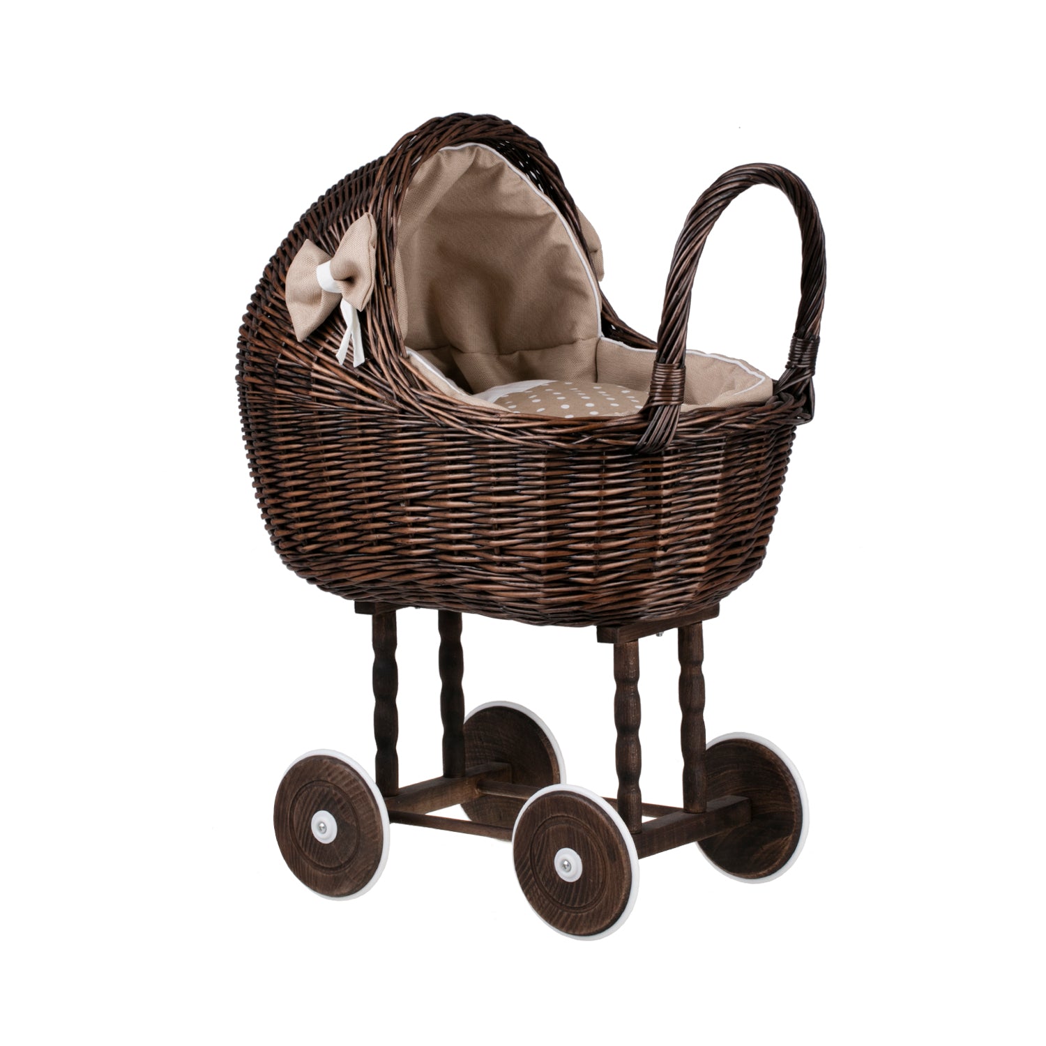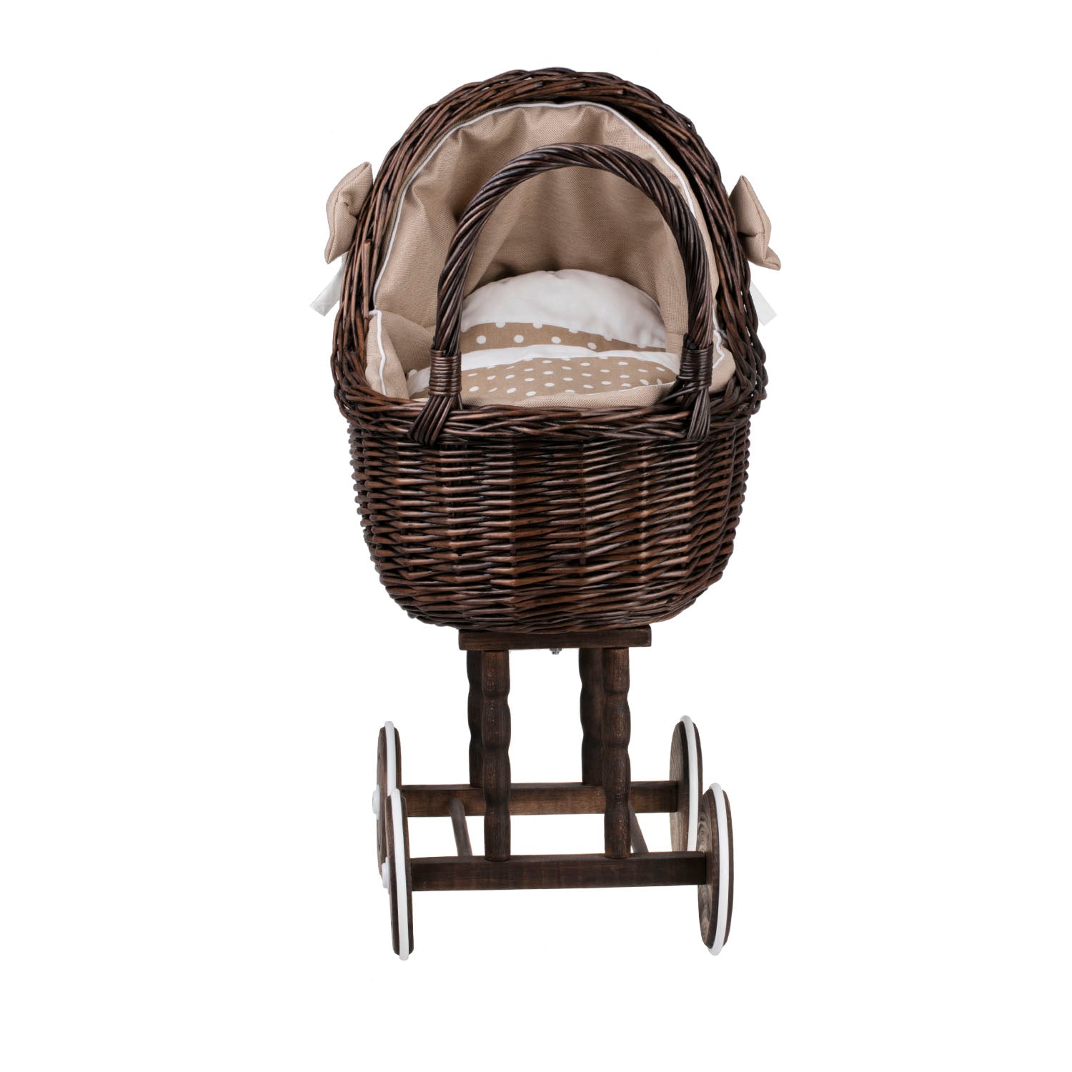 Lena wiklinowy wózek dla lalek z beżowym obszyciem, kołderką i poduszką TheWickerStories