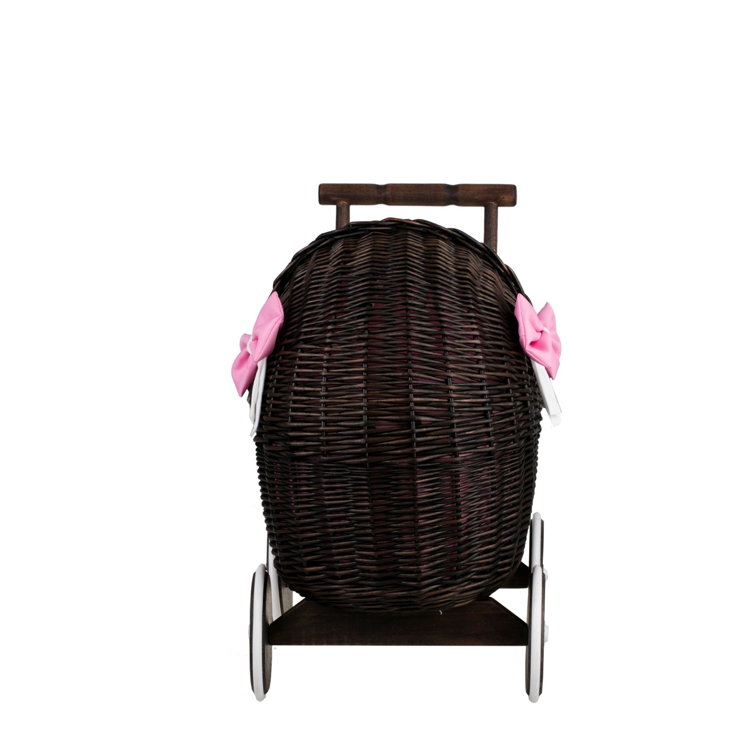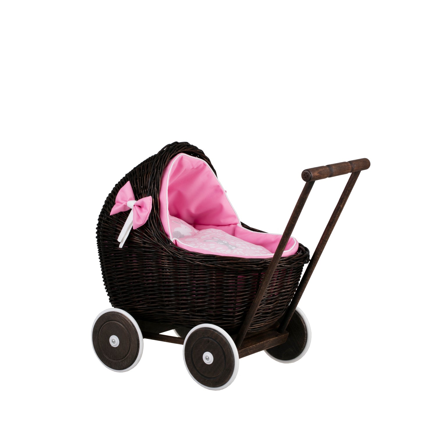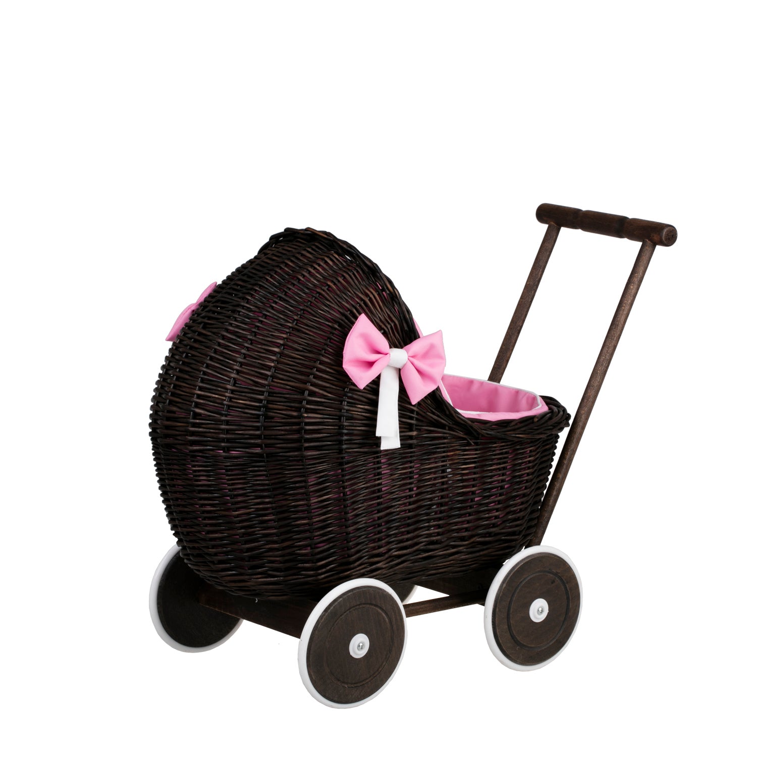 Lili wiklinowy wózek dla lalek z różowym obszyciem, kołderką i poduszką TheWickerStories