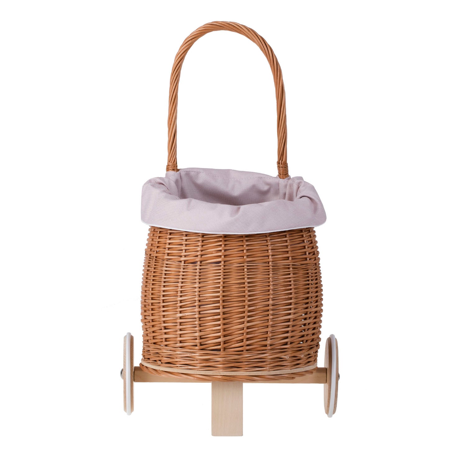 Specyfikacja Twojego Luke wiklinowy wózek dla dzieci z różowym obszyciem, z rączką i drewnianymi kołami TheWickerStories