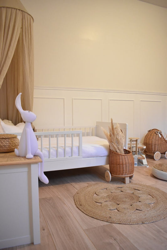 Wózek powstaje w Europie z dbałością o detale – to prawdziwe rękodzieło tworzone z selekcjonowanej, naturalnej wikliny. Surowiec jest odnawialny i przyjazny środowisku, a starannie dobrane pręty gwarantują trwałość oraz sprężystość konstrukcji. Równy splot i estetyczne wykończenie sprawiają, że produkt prezentuje się elegancko w pokoju dziecięcym, a jednocześnie pozostaje odporny na codzienne użytkowanie.