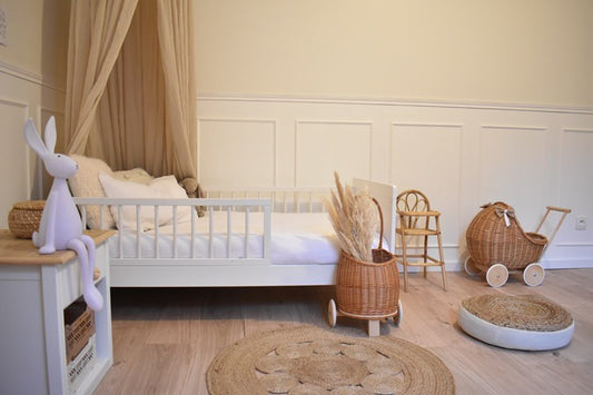 Powstał z europejskiej wikliny – surowca odnawialnego i przyjaznego środowisku. Każdy egzemplarz to autentyczne rękodzieło, starannie wykonane w UE bez użycia szkodliwych chemikaliów, dlatego produkt jest bezpieczny dla dzieci i trwały na lata. Wkładka tekstylna jest zdejmowana i łatwa do prania, co ułatwia utrzymanie higieny nawet przy intensywnym użytkowaniu.